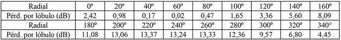 - Arreglo de antenas de acuerdo a la siguiente tabla:
