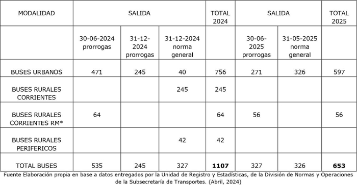 15° Que, para garantizar la debida continuidad de los servicios de transporte público remunerado de pasajeros, asegurar la movilidad de los usuarios y teniendo en consideración que las suspensiones de los plazos establecidos para cancelar, por antigüedad, a taxis, buses y minibuses del Registro Nacional de Servicios de Transporte de Pasajeros se extendieron como máximo hasta junio del año 2025, lo que implicaría la salida inminente de 8.388 taxis y de 1.760 buses, y significaría la disminución de la oferta de transporte público de pasajeros que afectaría considerablemente la accesibilidad de la población a los servicios, es que este Ministerio se ve en la necesidad de adoptar las medidas que se indican en la parte resolutiva del presente acto administrativo.