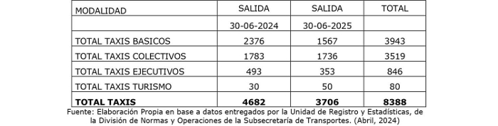 Tabla 2. Servicios de Taxis en todas sus Modalidades