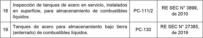 6° Que, a través de la resolución exenta SEC N° 3.899, de fecha 30.12.2010, se aprobó el Protocolo SEC PC N° 111/2: "Inspección de Tanques de Acero en Servicio, Instalados en Superficie, para Almacenamiento de Combustibles Líquidos", (en lo sucesivo sólo PC-111/2), para ser aplicado como procedimiento de inspección periódica a los tanques de superficie, incluyendo los tanques ensamblados en fábrica y los tanques construidos in situ (en el sitio).