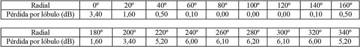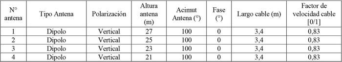 - Arreglo de antena, de acuerdo al siguiente cuadro: