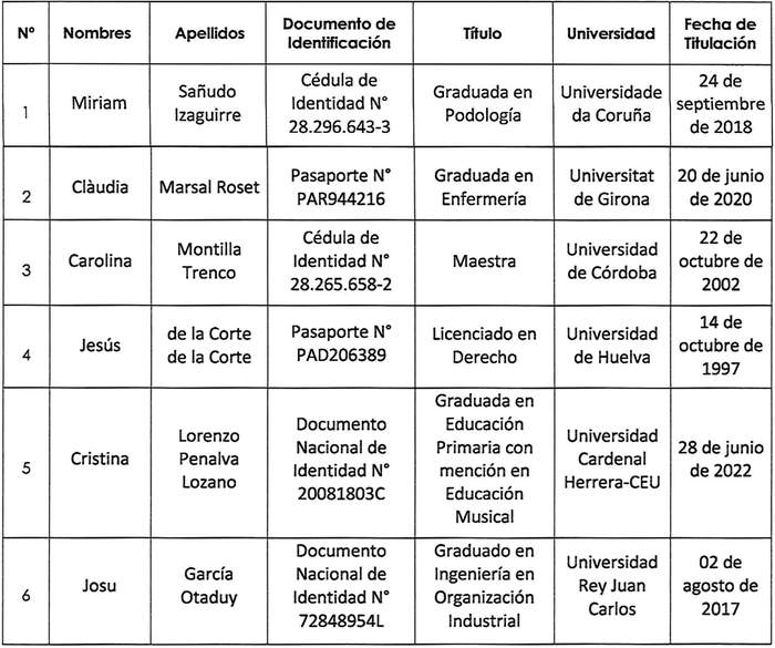 Que, revisados los antecedentes acompañados a las respectivas solicitudes, la Unidad de Reconocimiento de Títulos de esta Subsecretaría constató que los títulos analizados corresponden a diplomas o grados académicos obtenidos en universidades españolas autorizadas por el Reino de España, que corresponden a programas acreditados o verificados y que han sido publicados en el Boletín Oficial del Estado; y que, en su caso, se ha acompañado el Certificado de Correspondencia al Marco Español de Cualificaciones para la Enseñanza Superior (MECES), siendo todos aquellos de Nivel 2 o 3, lo que corresponde a grado académico o postgrado respectivamente.