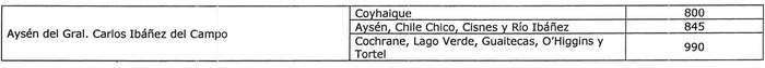 "El monto de subsidio base para los proyectos que participen del presente llamado será el que se indica en la presente tabla, al que no se le aplicará el factor multiplicador definido en la resolución exenta N° 1.874 (V. y U.), de 2015, de acuerdo a la comuna donde se ubique el proyecto, a excepción de las comunas de la Región de Aysén del General Carlos Ibáñez del Campo, donde sí se podrá aplicar dicho factor:"