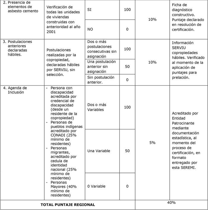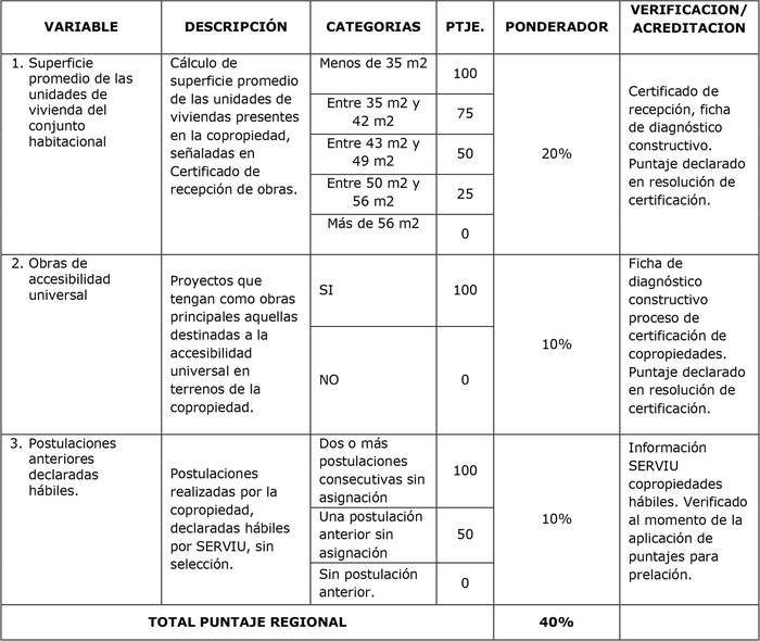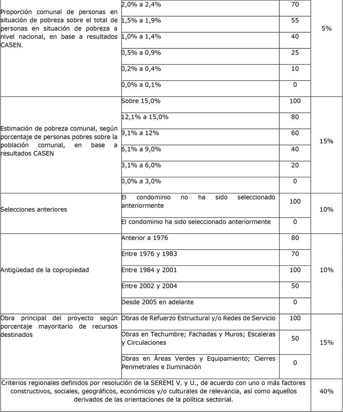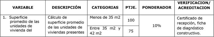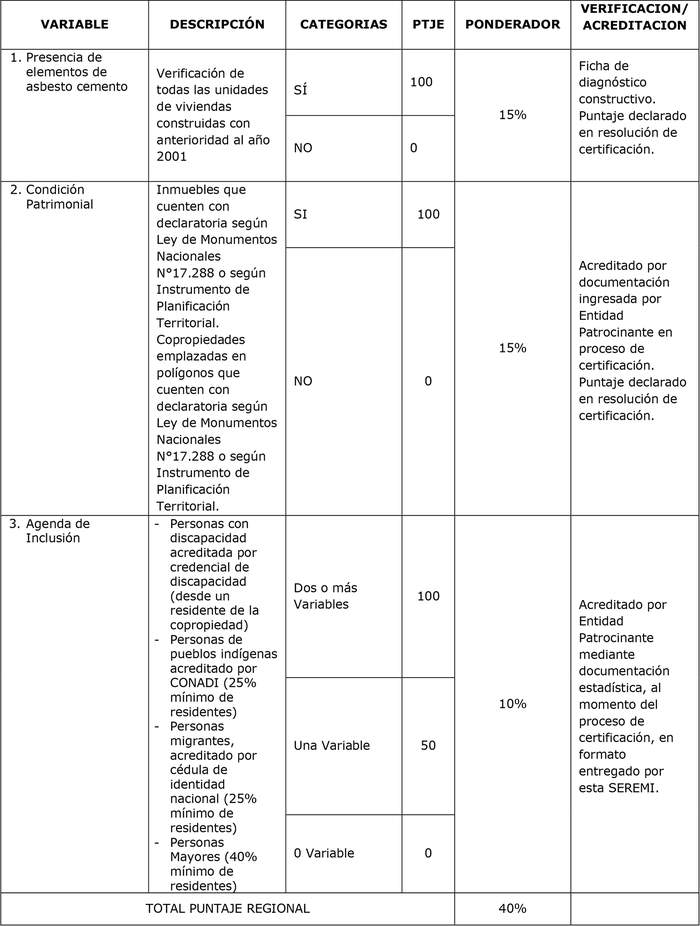 6. El puntaje del proyecto correspondiente a los Condominios de Vivienda Social se obtendrá de acuerdo con las variables y su respectivo ponderador señaladas en el siguiente cuadro, en reemplazo de lo estipulado en el numeral 1. del Artículo 94 del DS N° 27 (V. y U.), de 2016.