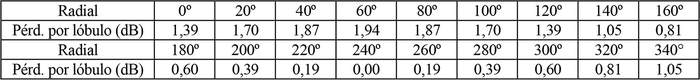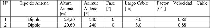 - Arreglo de antenas de acuerdo a la siguiente tabla: