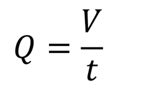 El caudal Q se define como el volumen de agua, V, que pasa por una sección en un determinado tiempo, t, es decir: