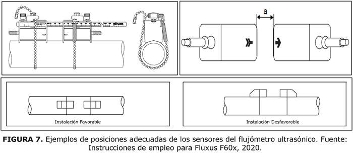 iii. La medición siempre debe realizarse con la tubería llena de líquido y en dirección del flujo (en caso contrario, el caudal será de la misma magnitud, pero con signo negativo), respetando tramos rectos para la instalación del flujómetro y resguardando siempre las distancias recomendadas por el fabricante para las singularidades aguas arriba y abajo del equipo de medición. En caso de que la instalación se lleve a cabo cerca de una singularidad, esta será igualmente válida considerando un error cuantificado por la desviación estándar de los datos obtenidos in situ en el transcurso que dure la medición.