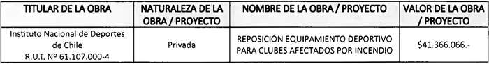 a) Reemplázase en el ítem "Titular de la Obra", del cuadro de la obra denominada "Reposición Equipamiento Deportivo para Clubes Afectados por Incendio", donde dice "Instituto Nacional de Deportes, Región de Valparaíso RUT N° 61.107.000-4":