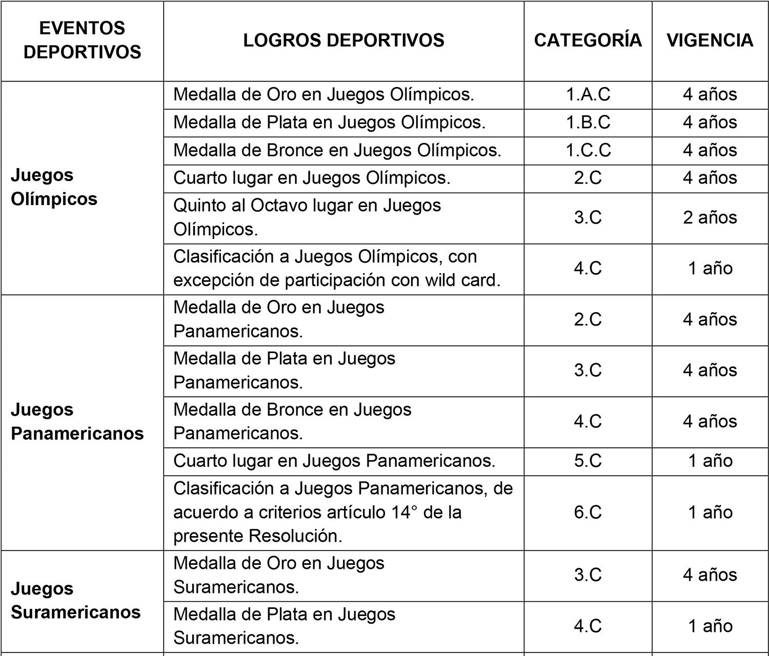 Se considerarán como logros deportivos que habilitan para ingresar al Sistema de Becas, aquellos obtenidos en modalidades y pruebas, individuales o colectivas, convocadas y premiadas, en el Programa de los Mega Eventos del Ciclo Olímpico y Paralímpico vigente. Estos logros son los siguientes: