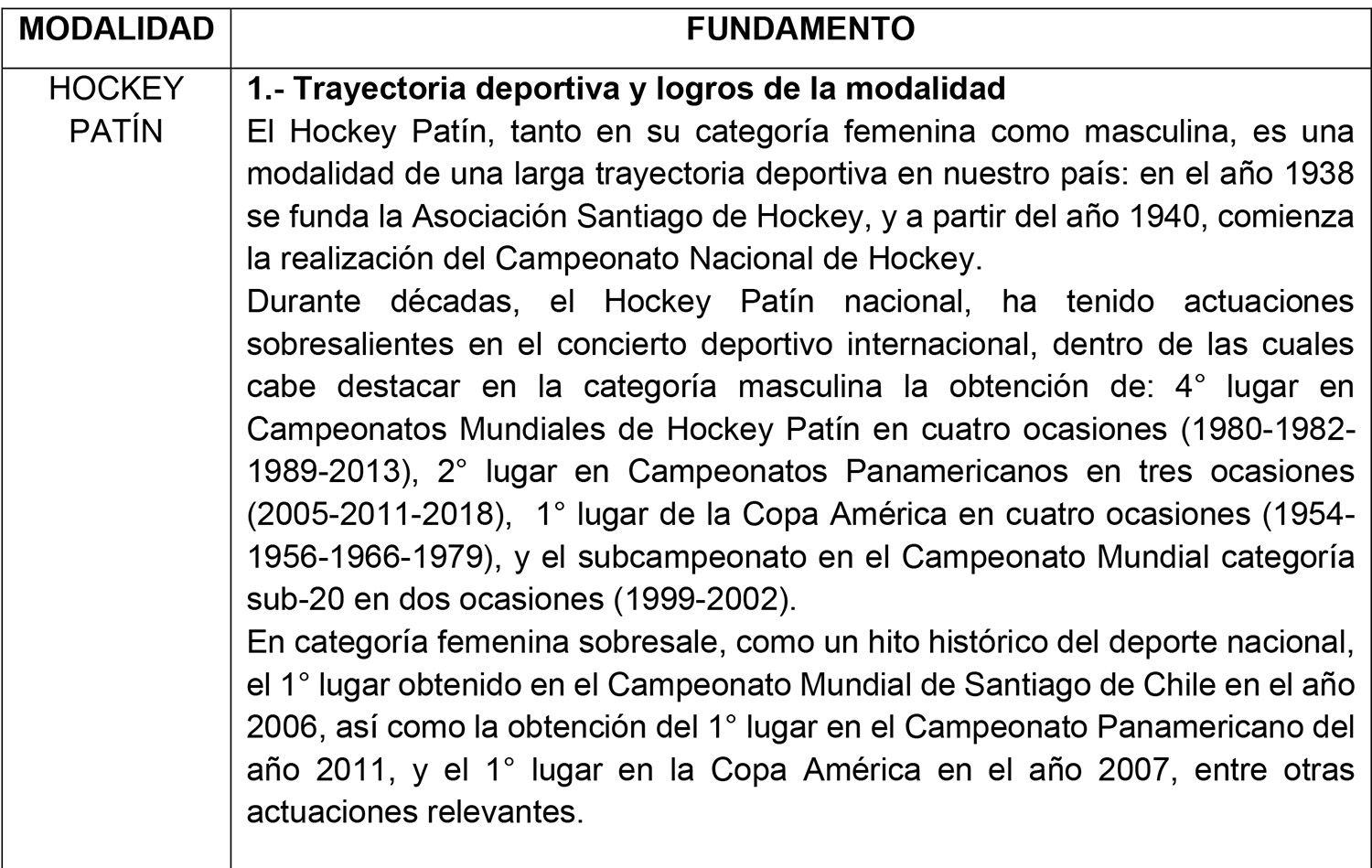 ANEXO N° I: CLASIFICACIÓN DE MODALIDADES DEPORTIVAS Y PRUEBAS PARA EFECTOS DEL INGRESO Y PERMANENCIA EN EL SISTEMA DE BECAS.