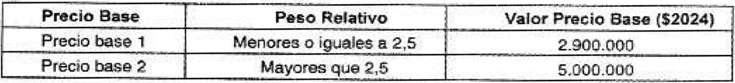 Precio Base referencia 1: Corresponderá Precio base 1.