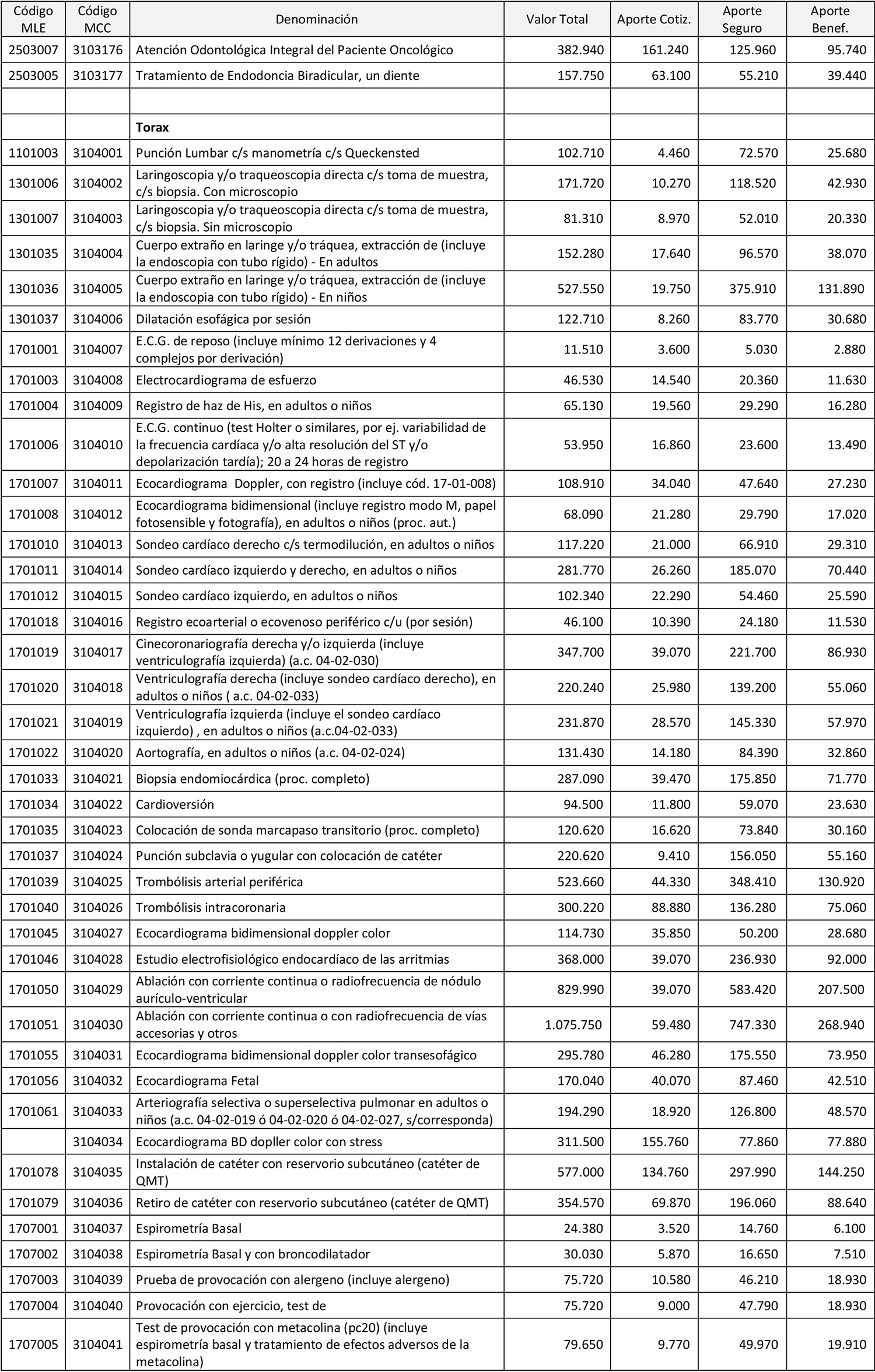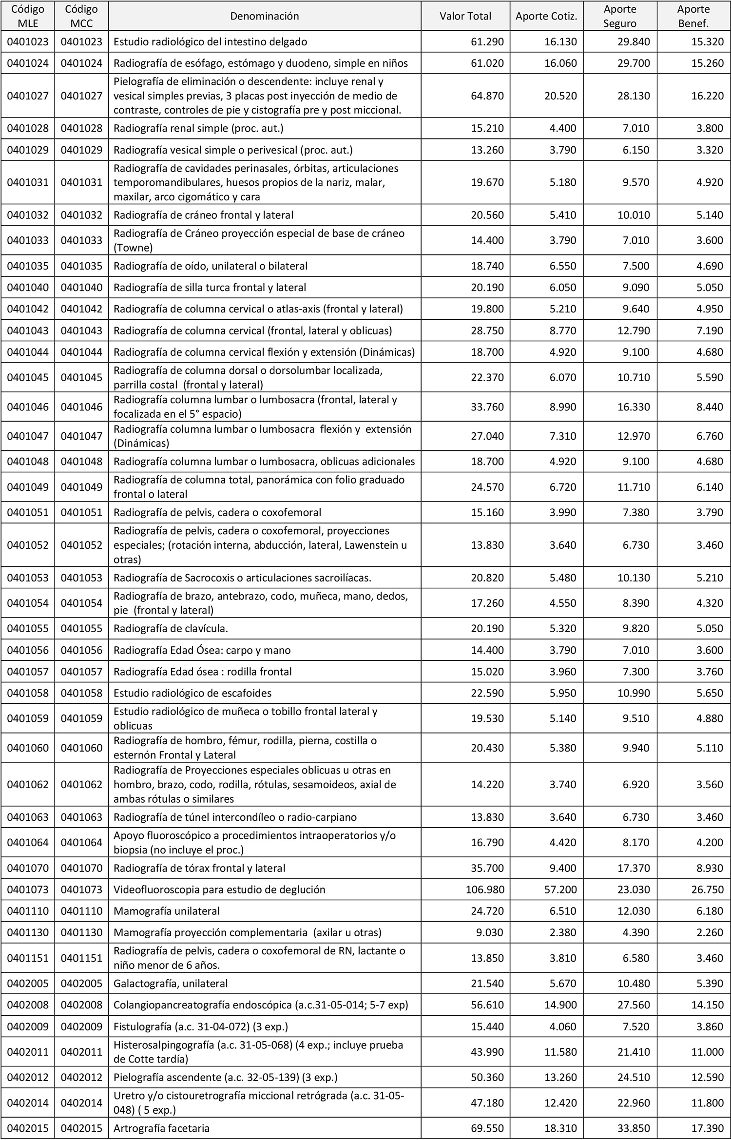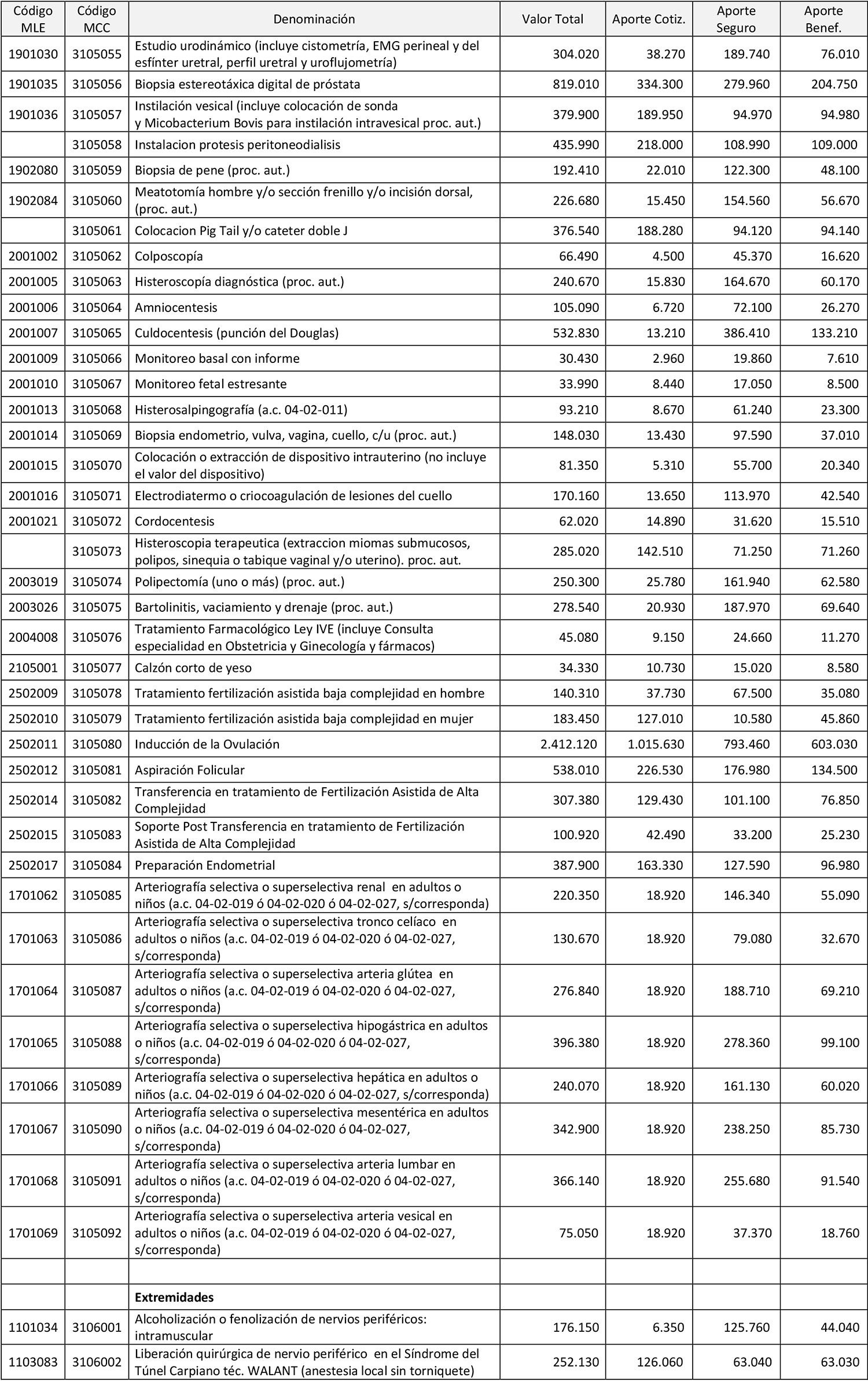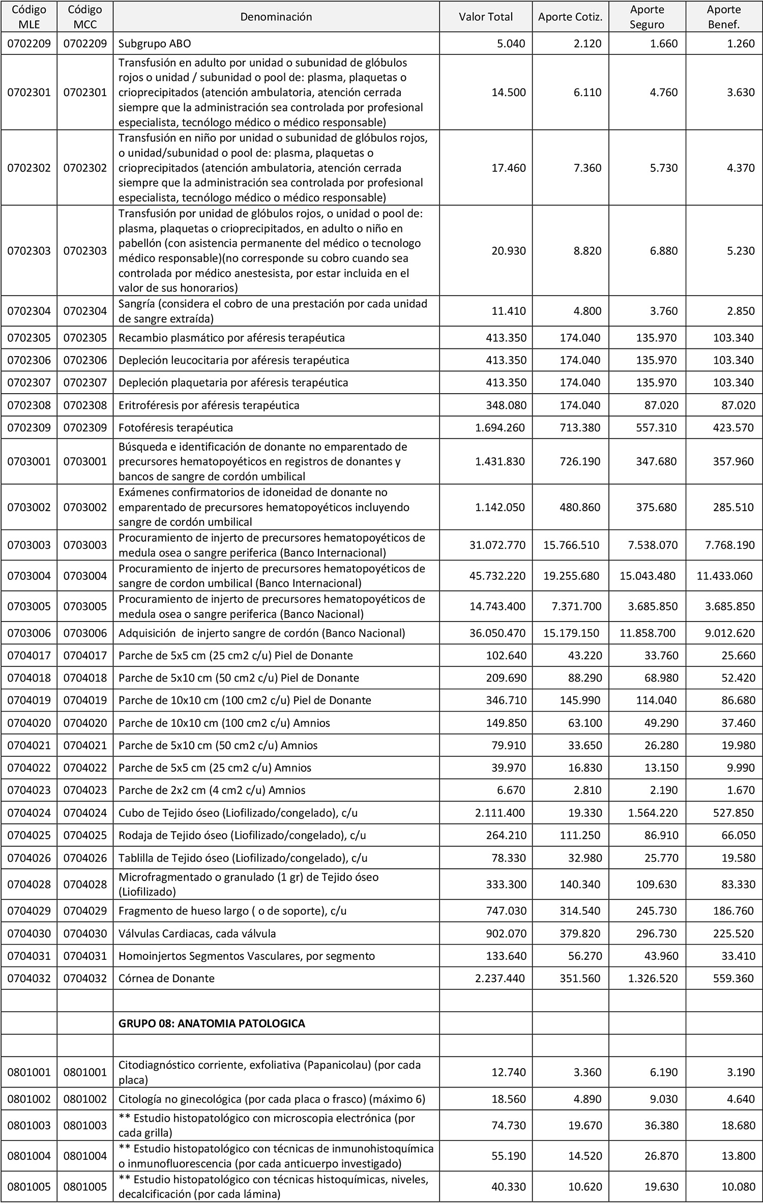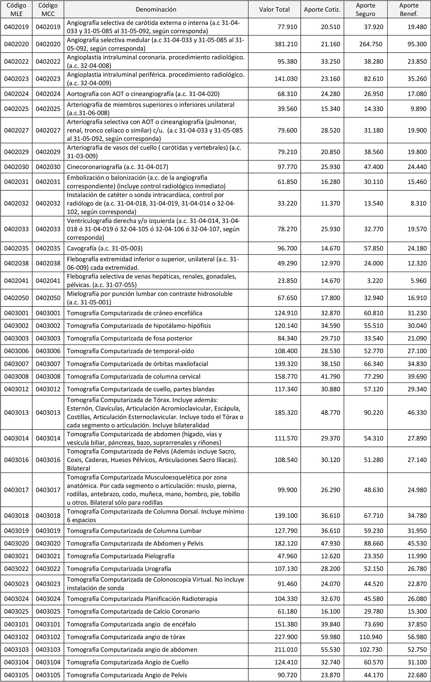 a) Prestaciones ambulatorias del Arancel MLE, que han sido reorganizadas en los siguientes grupos 01, 02 (códigos 0201405, 0201406, 0201407 y 0202501), 03, 04, 05, 06, 07, 08, 09, 13, 23, 24, 26, 29 y 31.