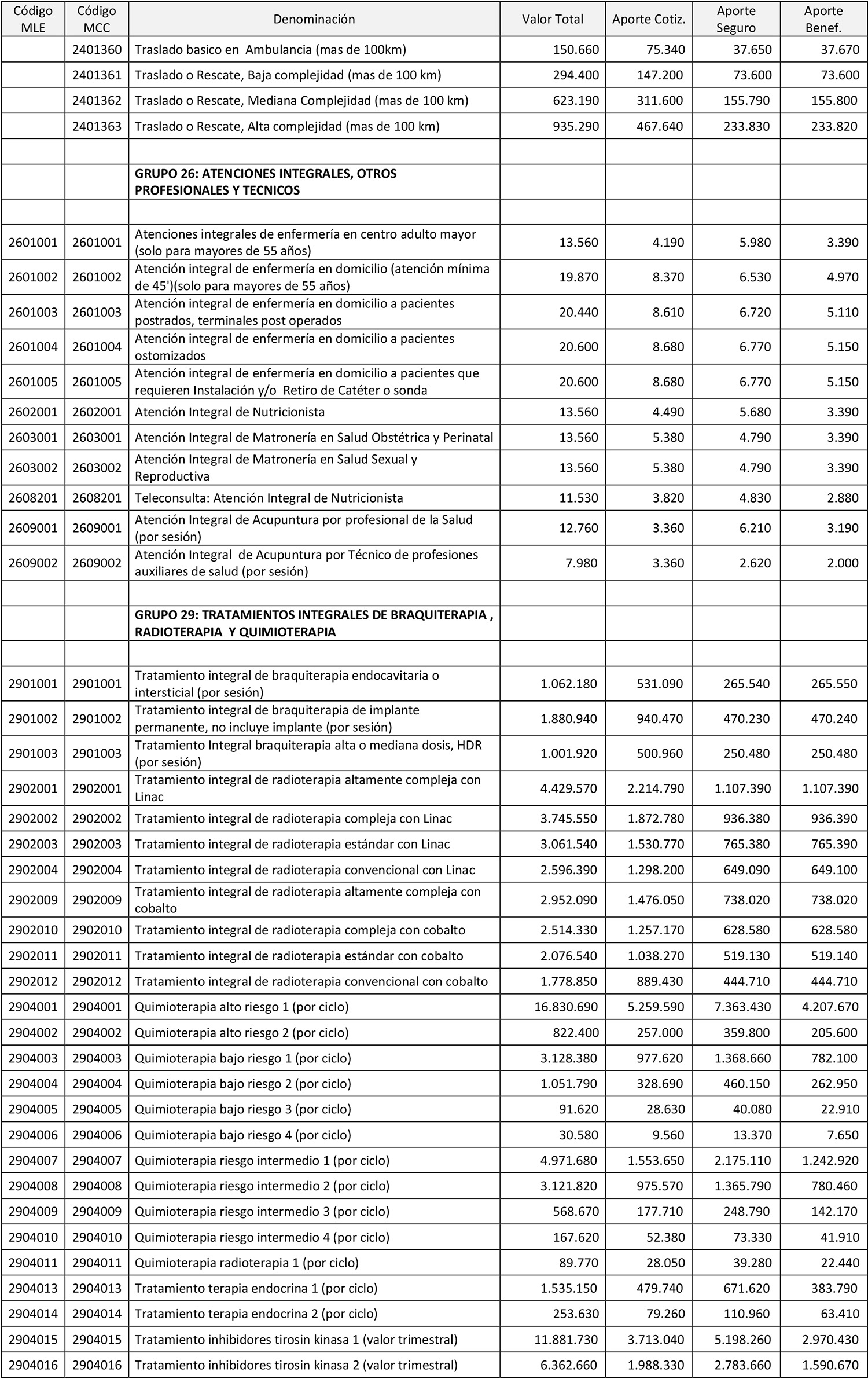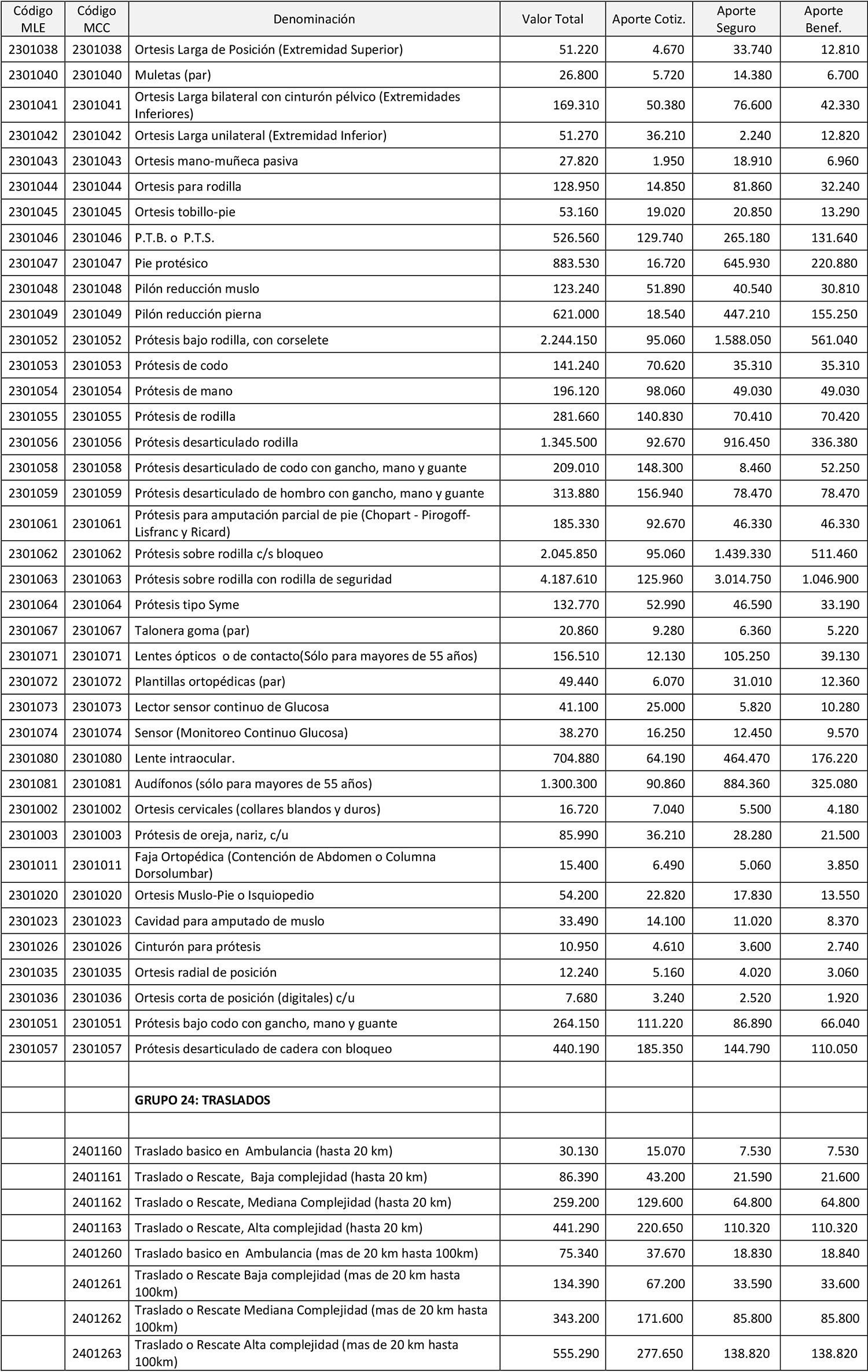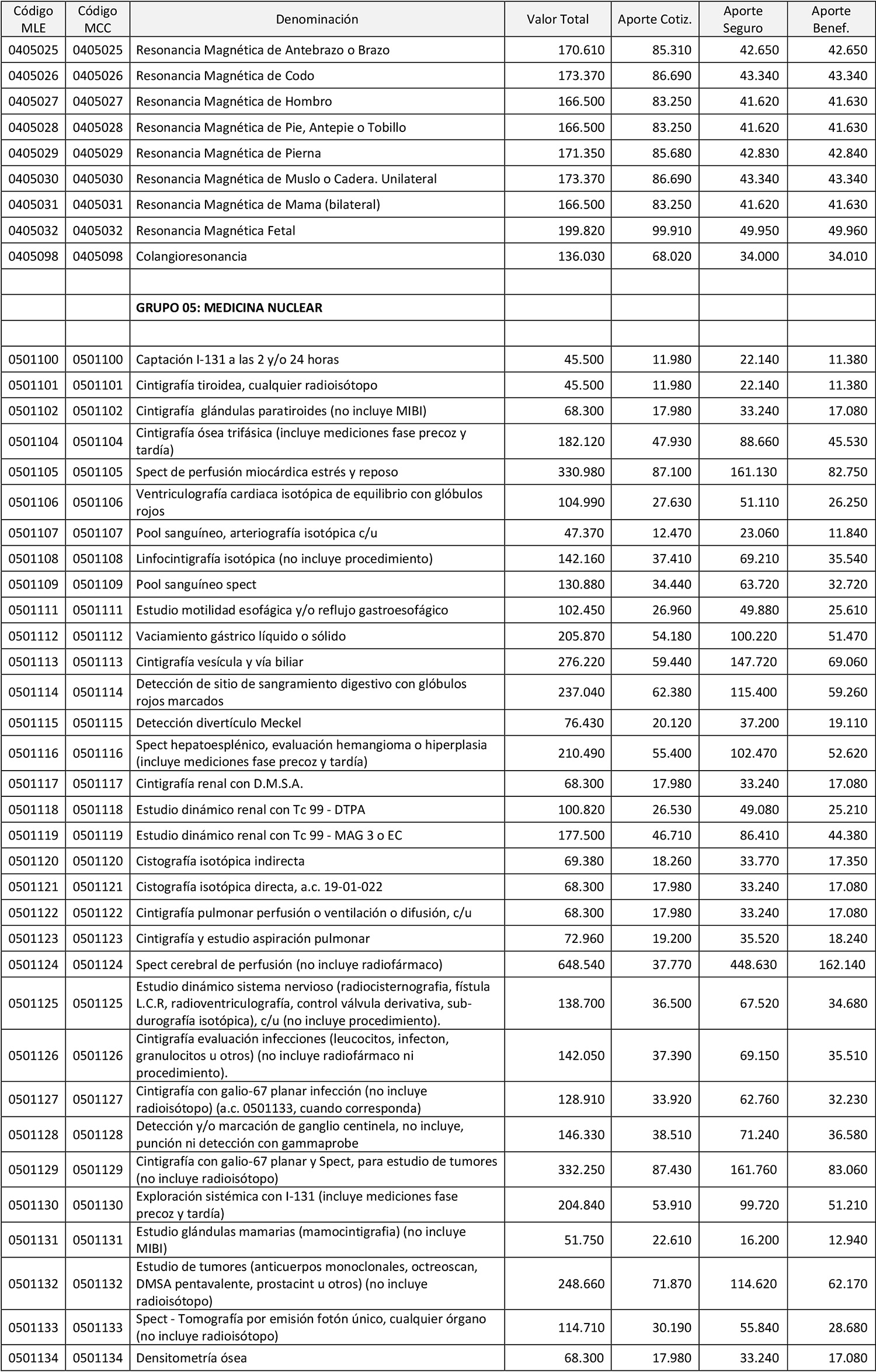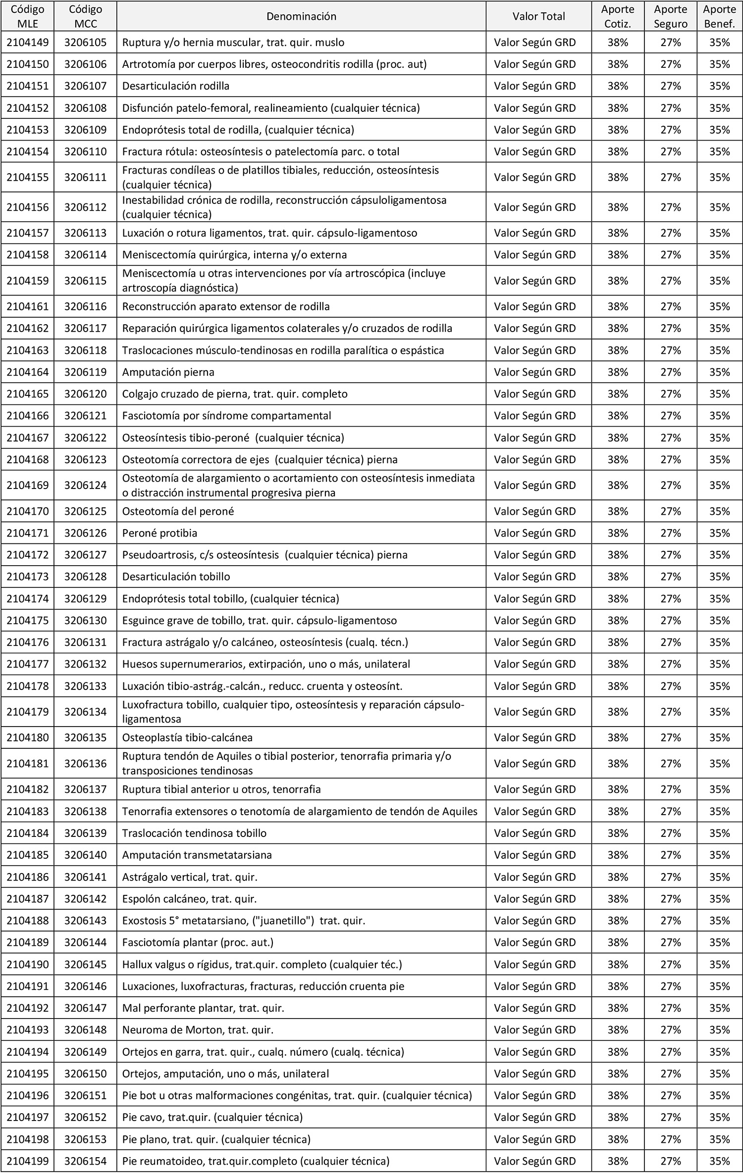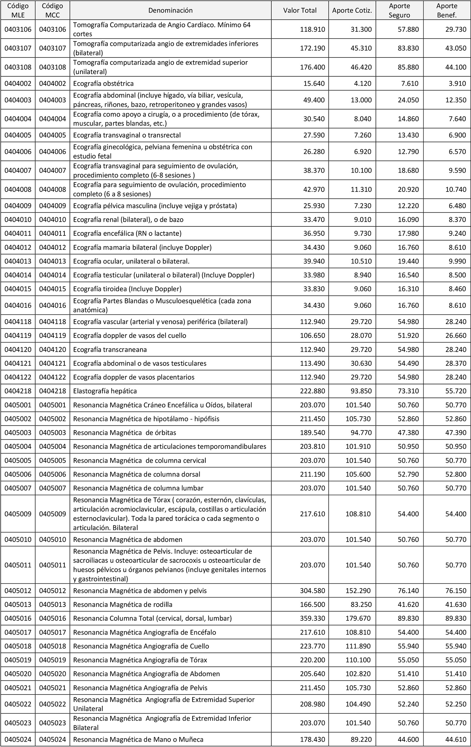 a) Prestaciones ambulatorias del Arancel MLE, que han sido reorganizadas en los siguientes grupos 01, 02 (códigos 0201405, 0201406, 0201407 y 0202501), 03, 04, 05, 06, 07, 08, 09, 13, 23, 24, 26, 29 y 31.