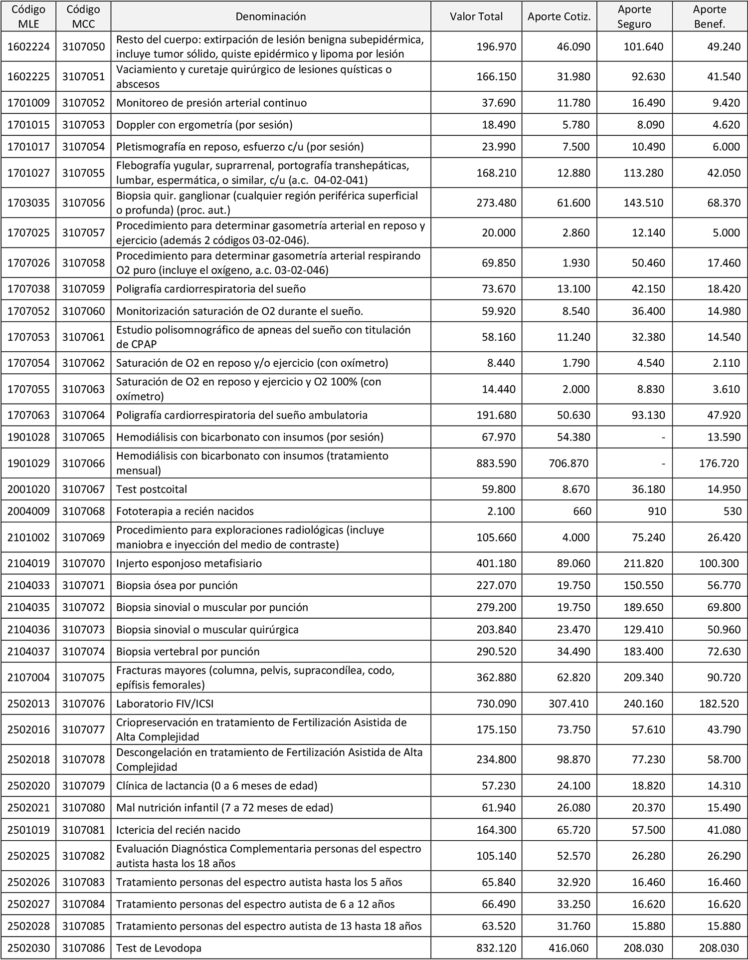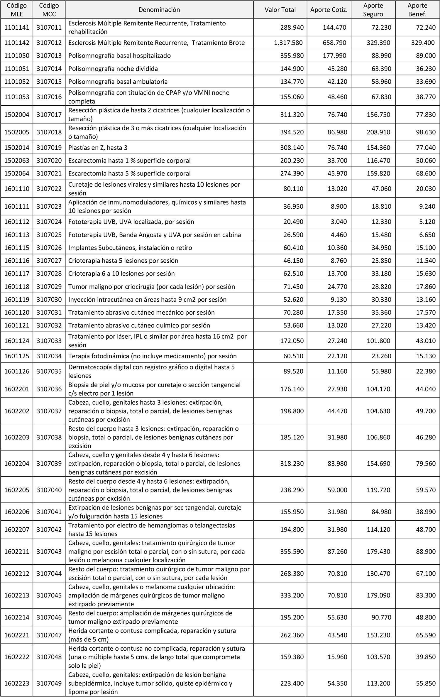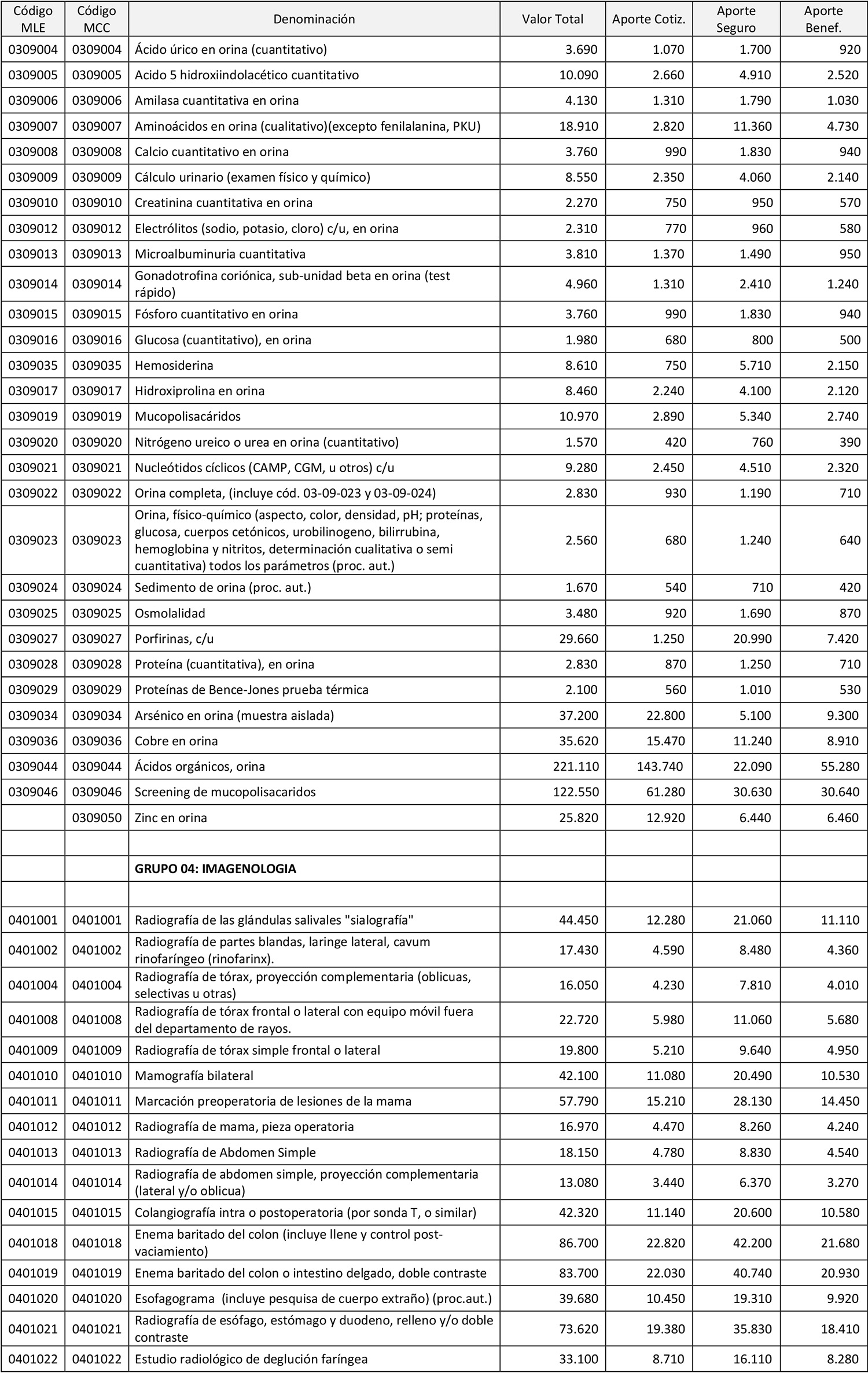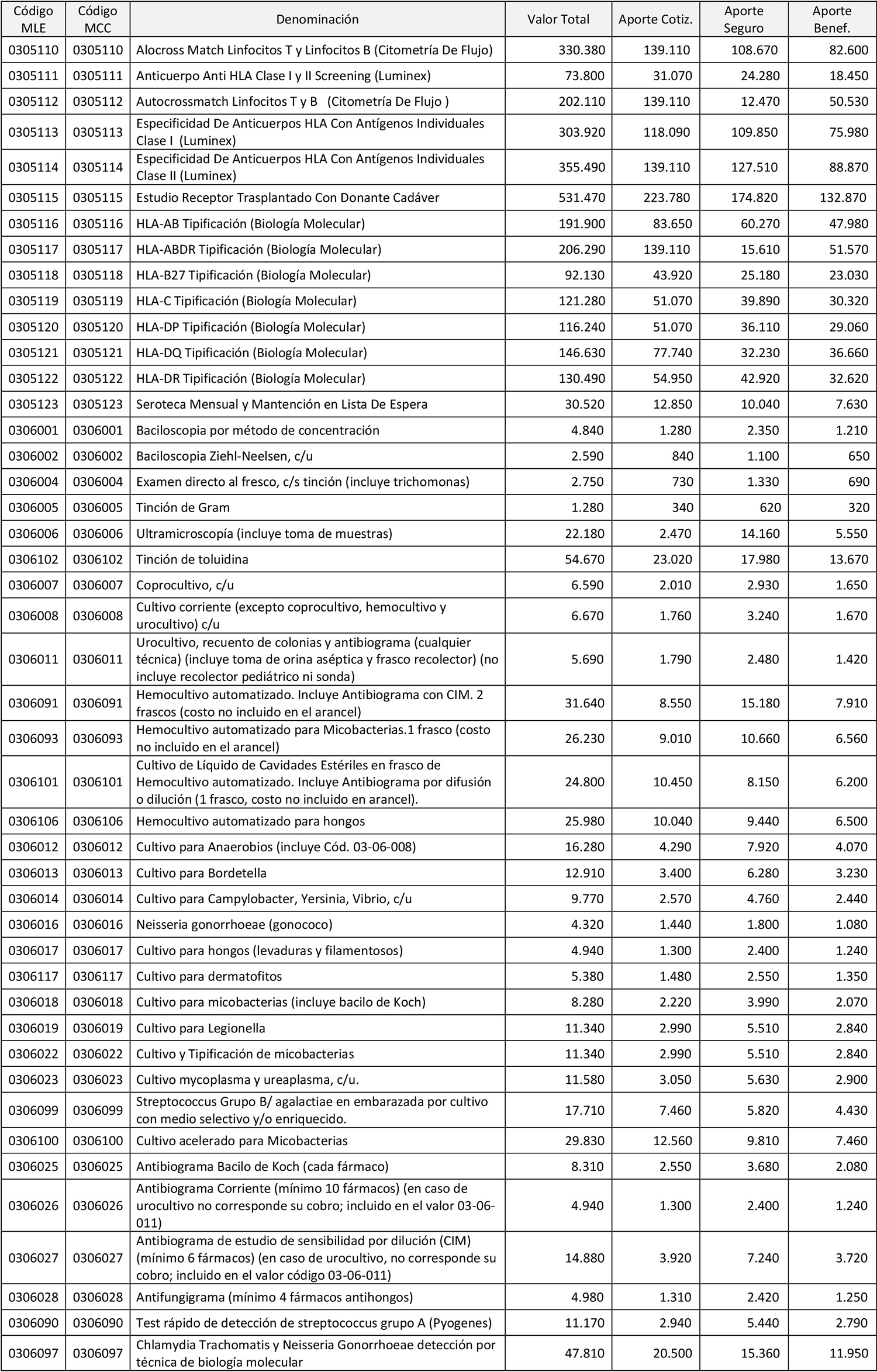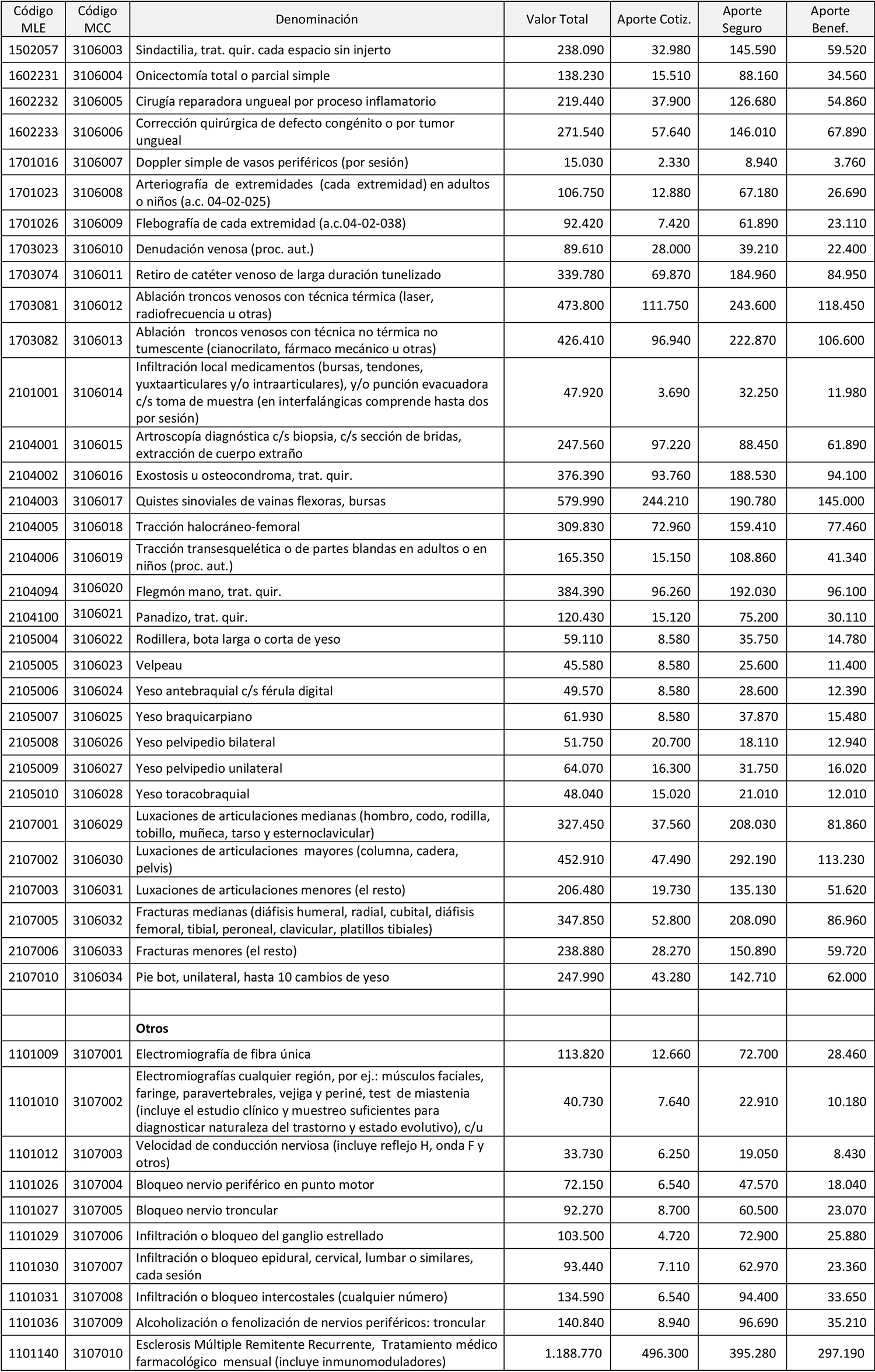 a) Prestaciones ambulatorias del Arancel MLE, que han sido reorganizadas en los siguientes grupos 01, 02 (códigos 0201405, 0201406, 0201407 y 0202501), 03, 04, 05, 06, 07, 08, 09, 13, 23, 24, 26, 29 y 31.