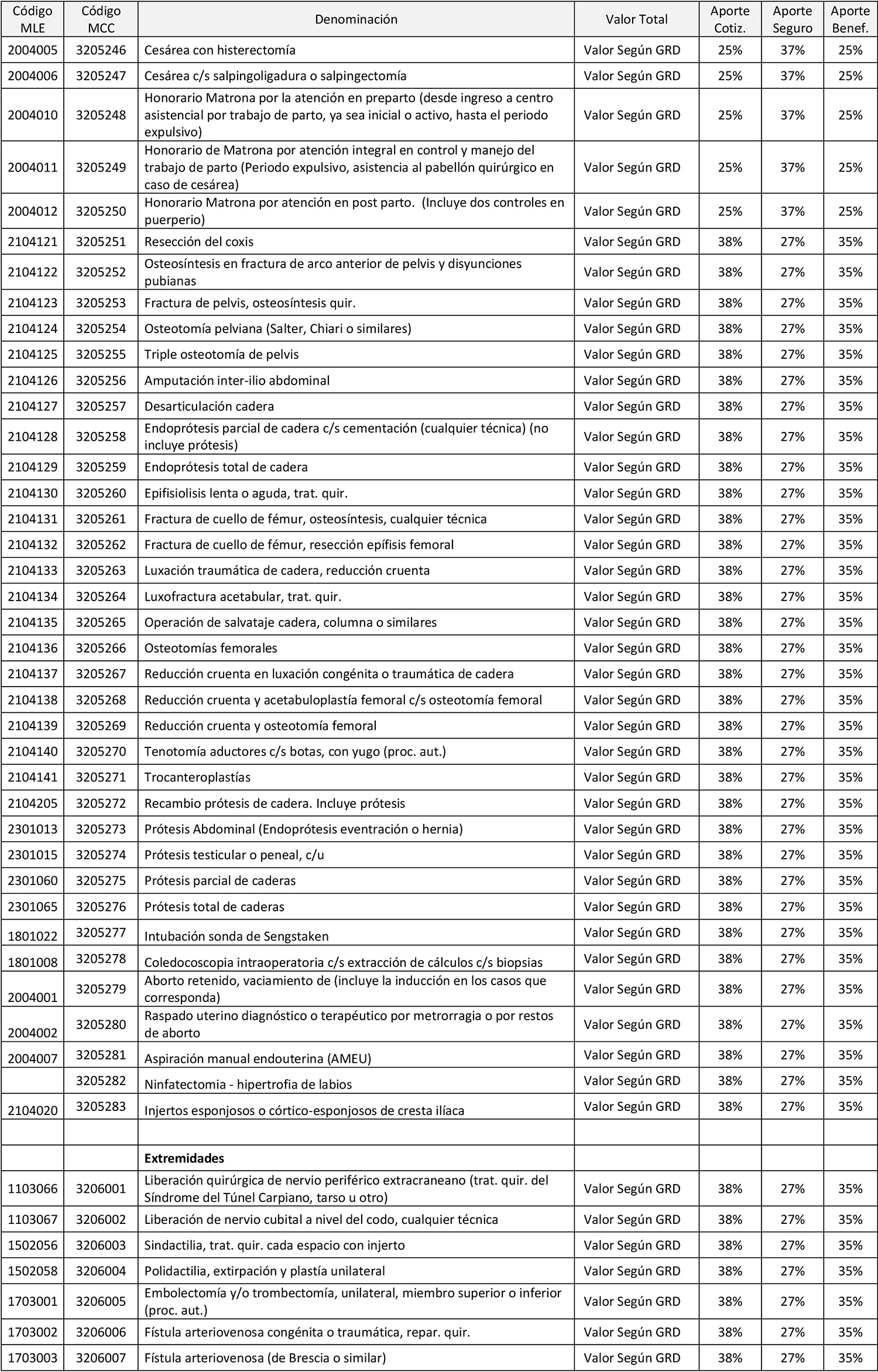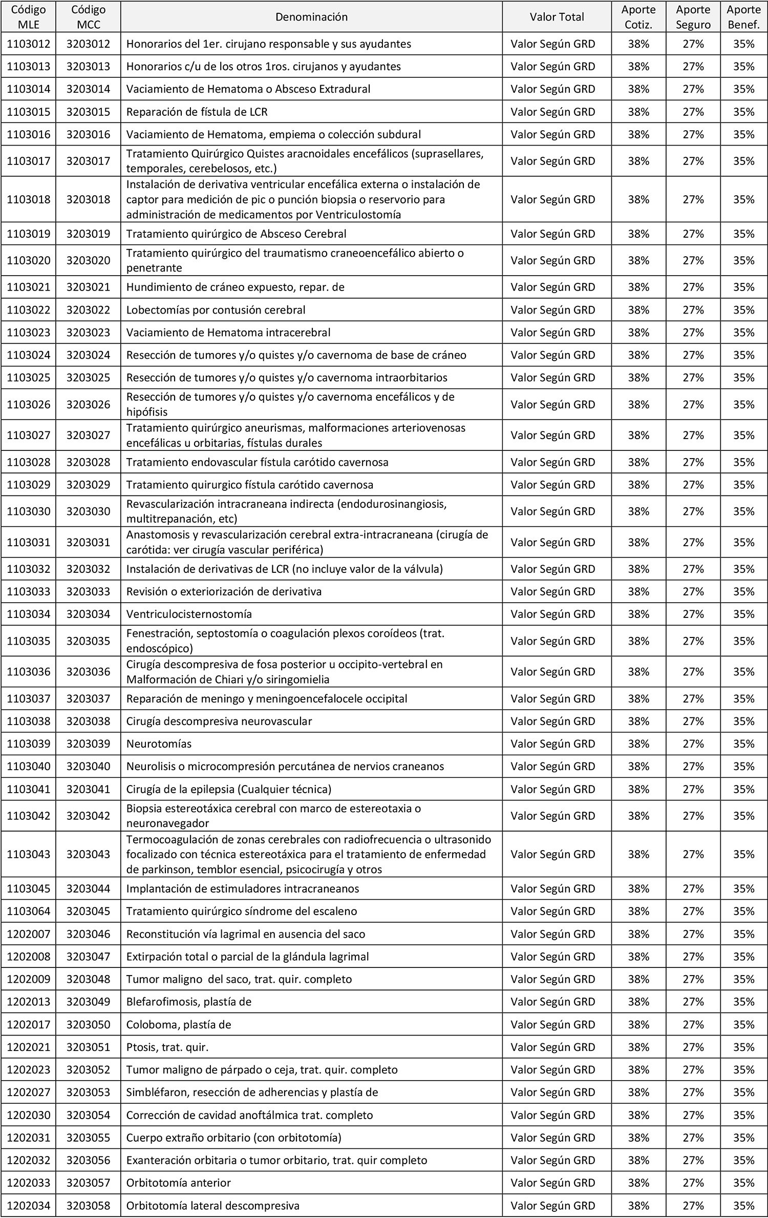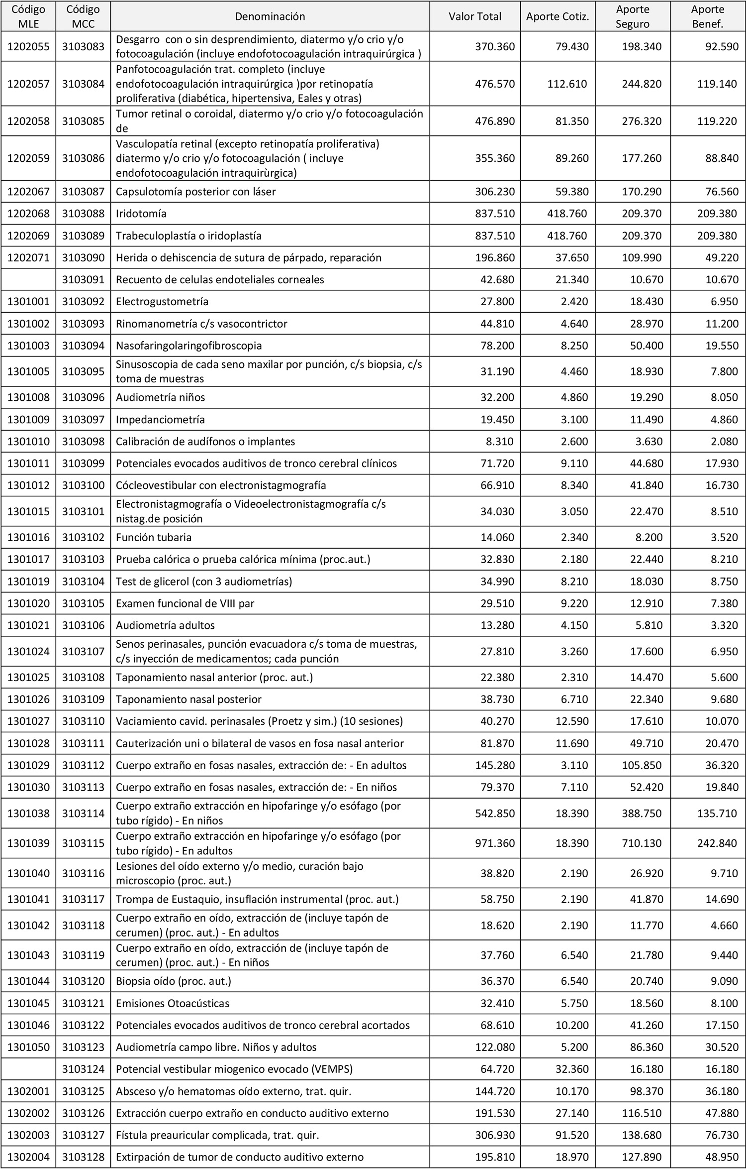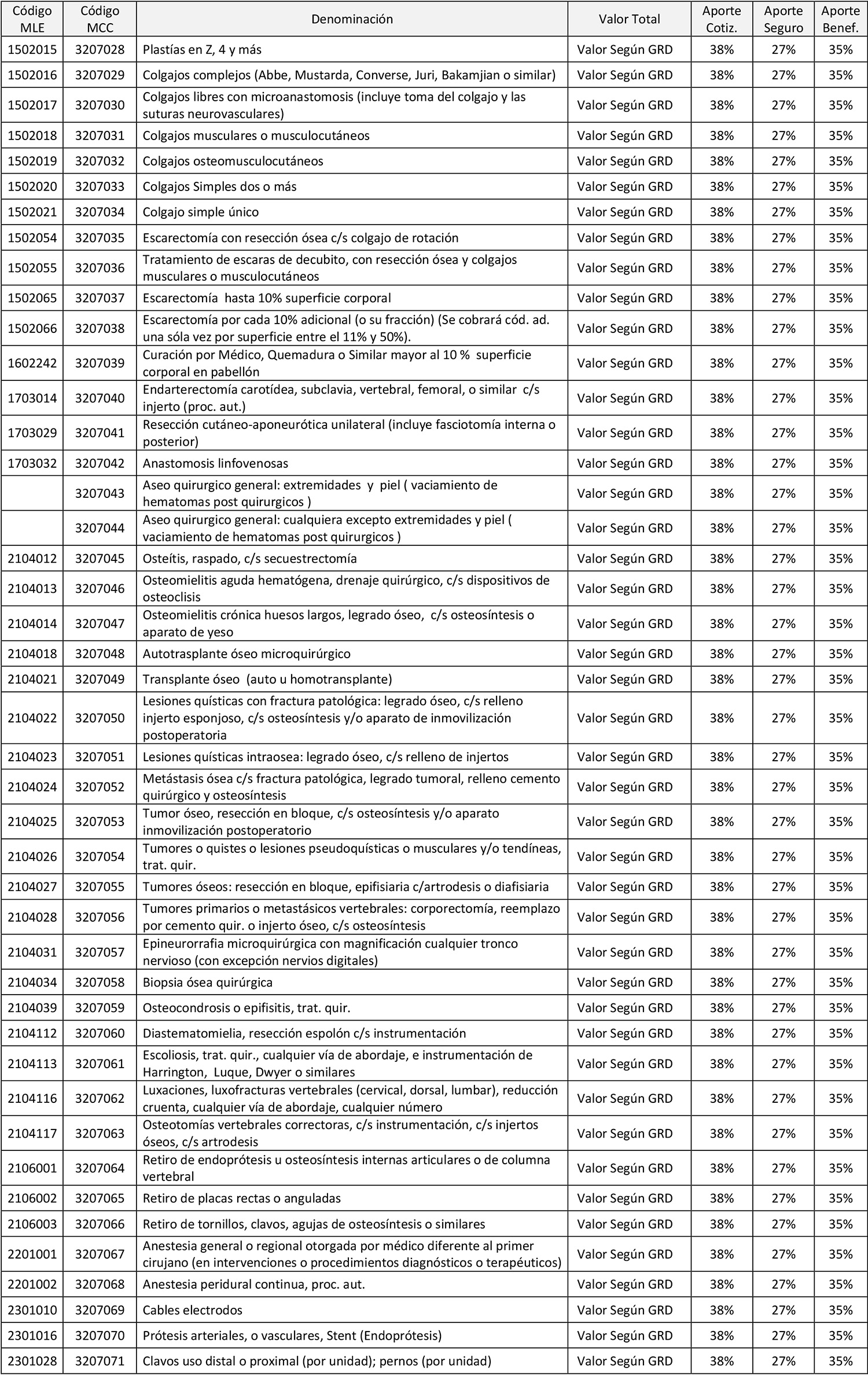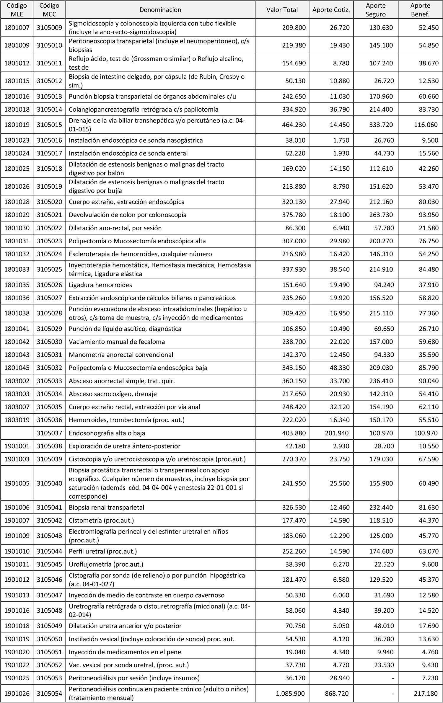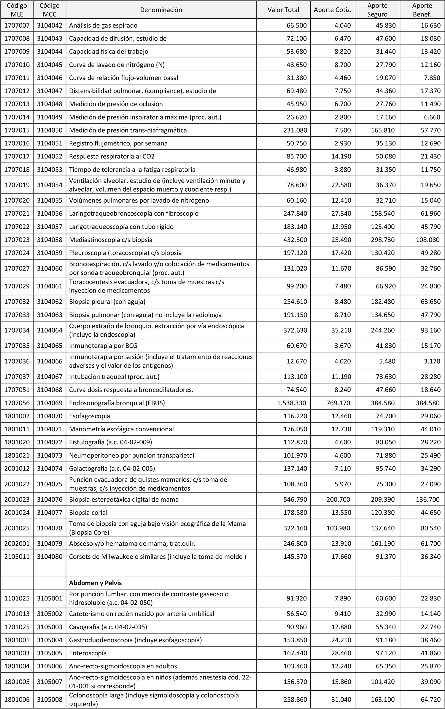 a) Prestaciones ambulatorias del Arancel MLE, que han sido reorganizadas en los siguientes grupos 01, 02 (códigos 0201405, 0201406, 0201407 y 0202501), 03, 04, 05, 06, 07, 08, 09, 13, 23, 24, 26, 29 y 31.
