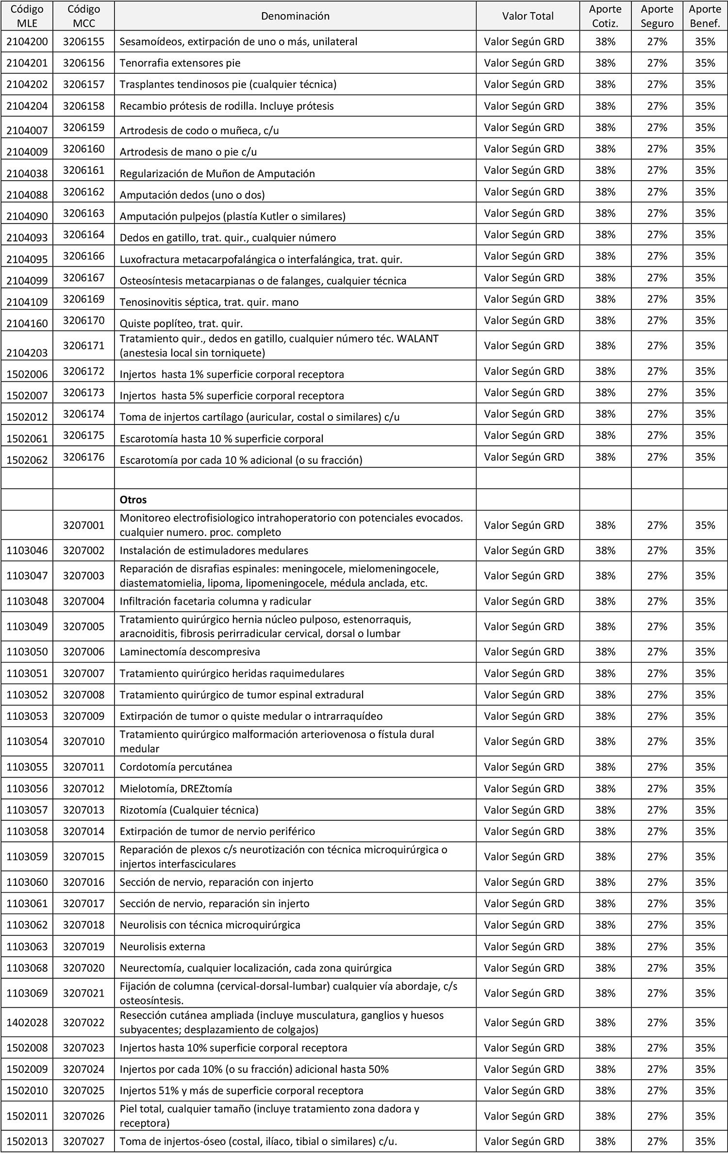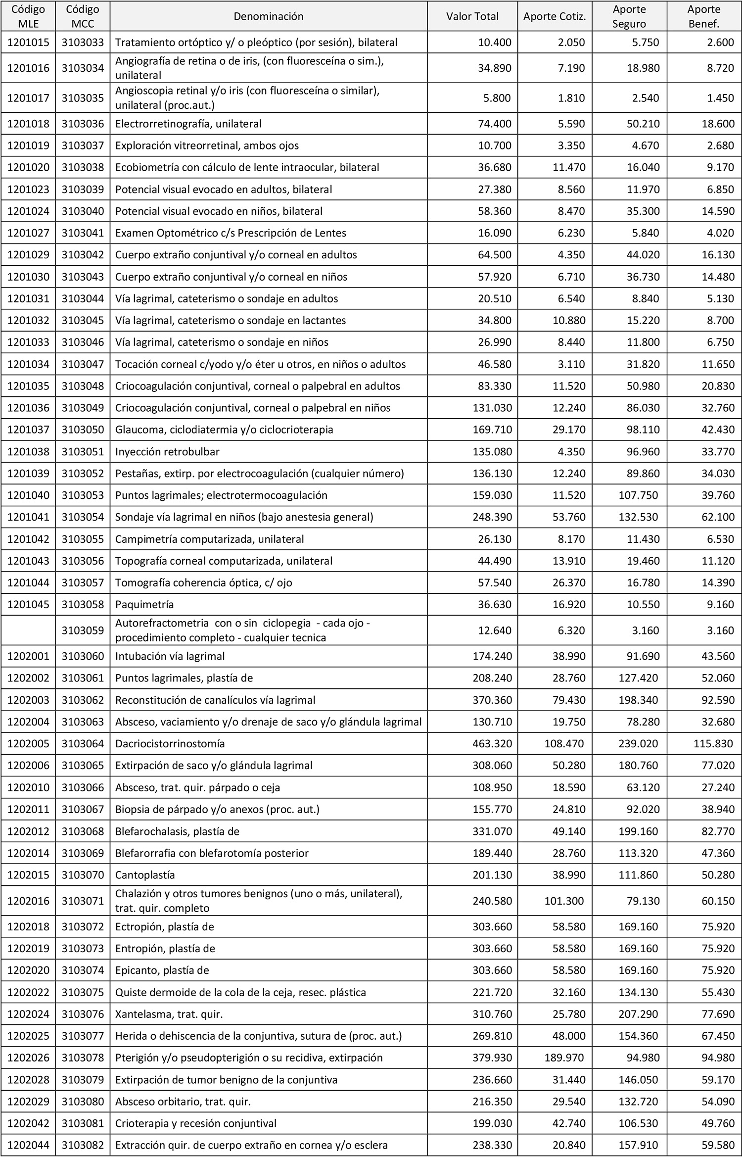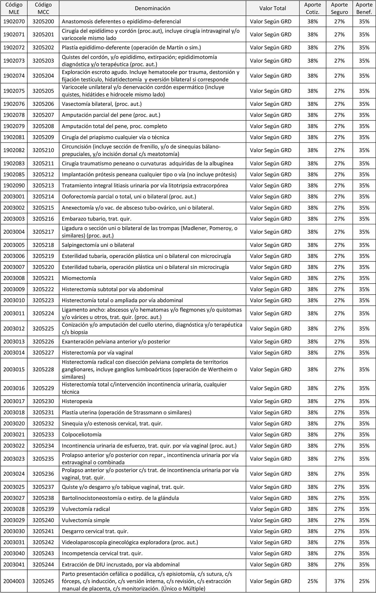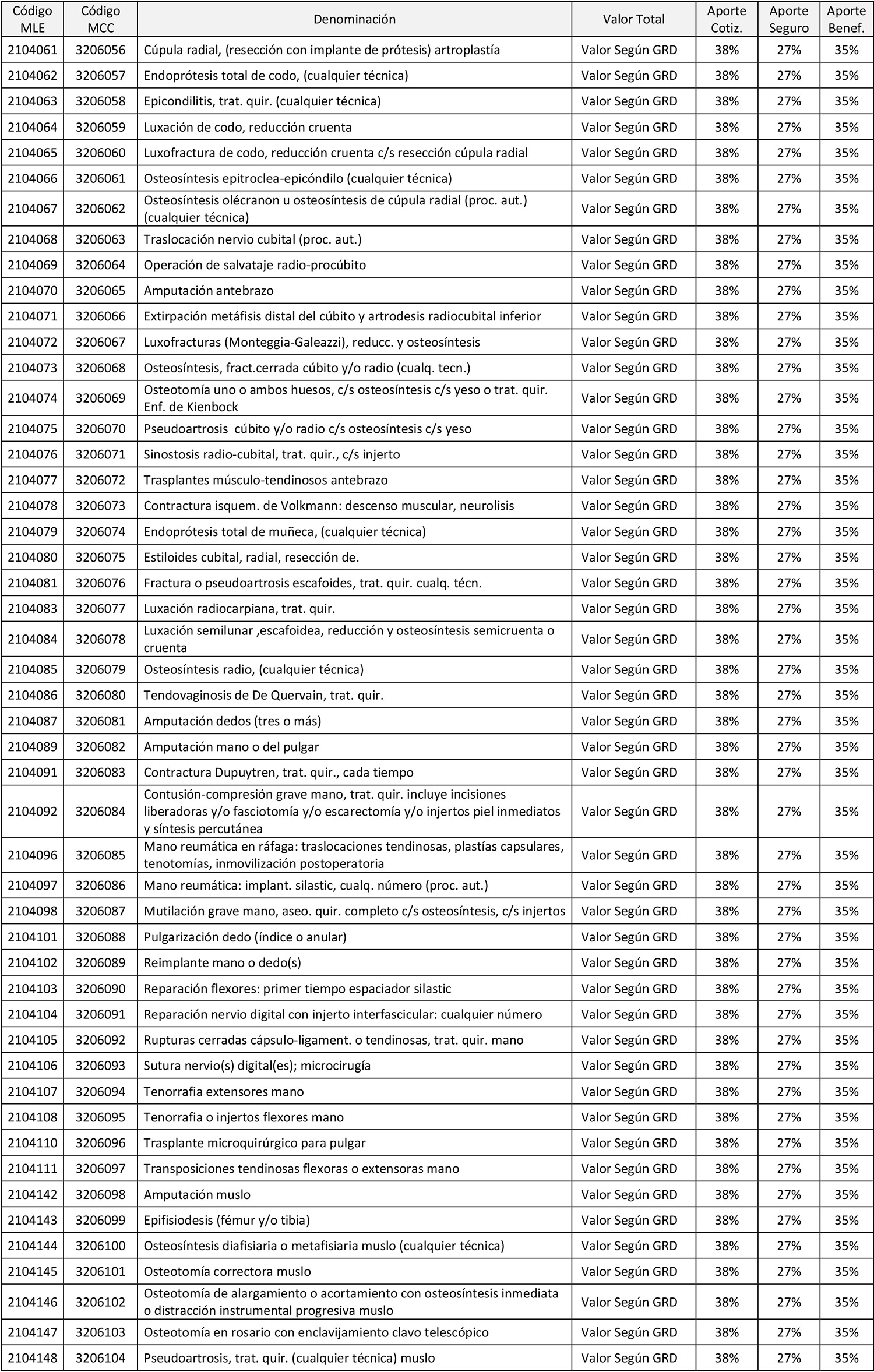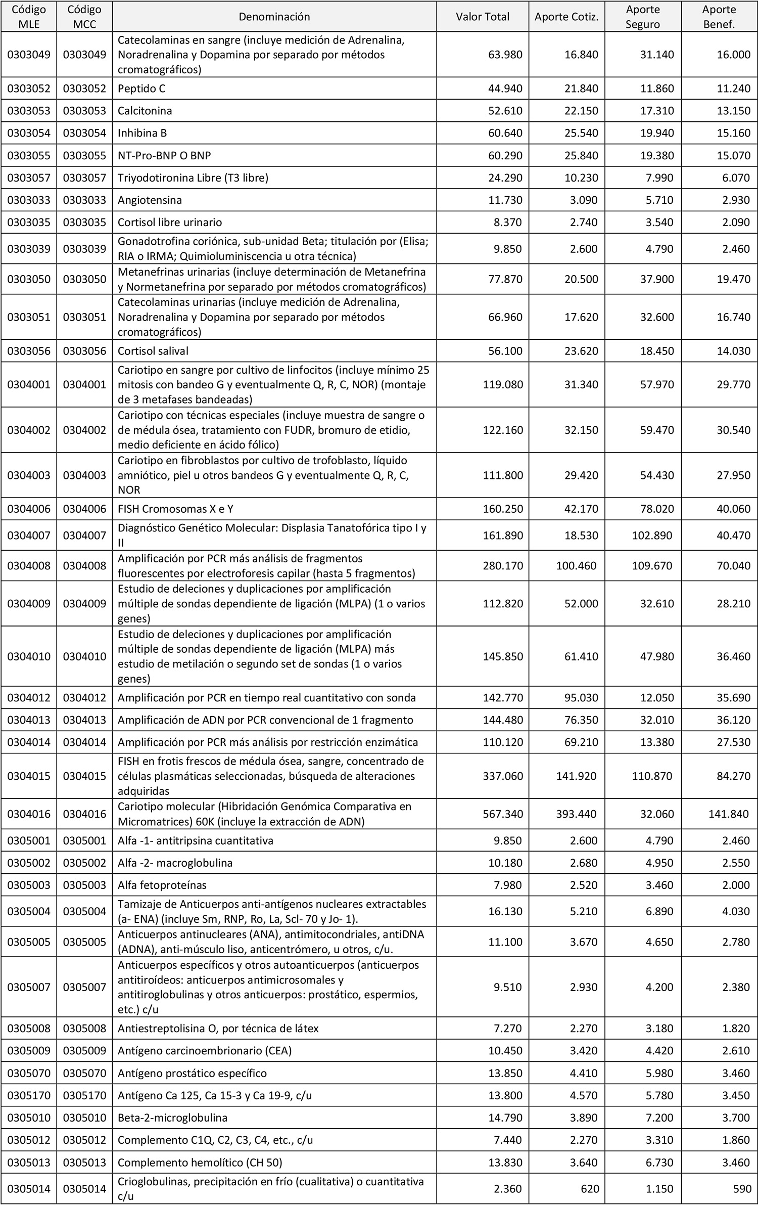 a) Prestaciones ambulatorias del Arancel MLE, que han sido reorganizadas en los siguientes grupos 01, 02 (códigos 0201405, 0201406, 0201407 y 0202501), 03, 04, 05, 06, 07, 08, 09, 13, 23, 24, 26, 29 y 31.