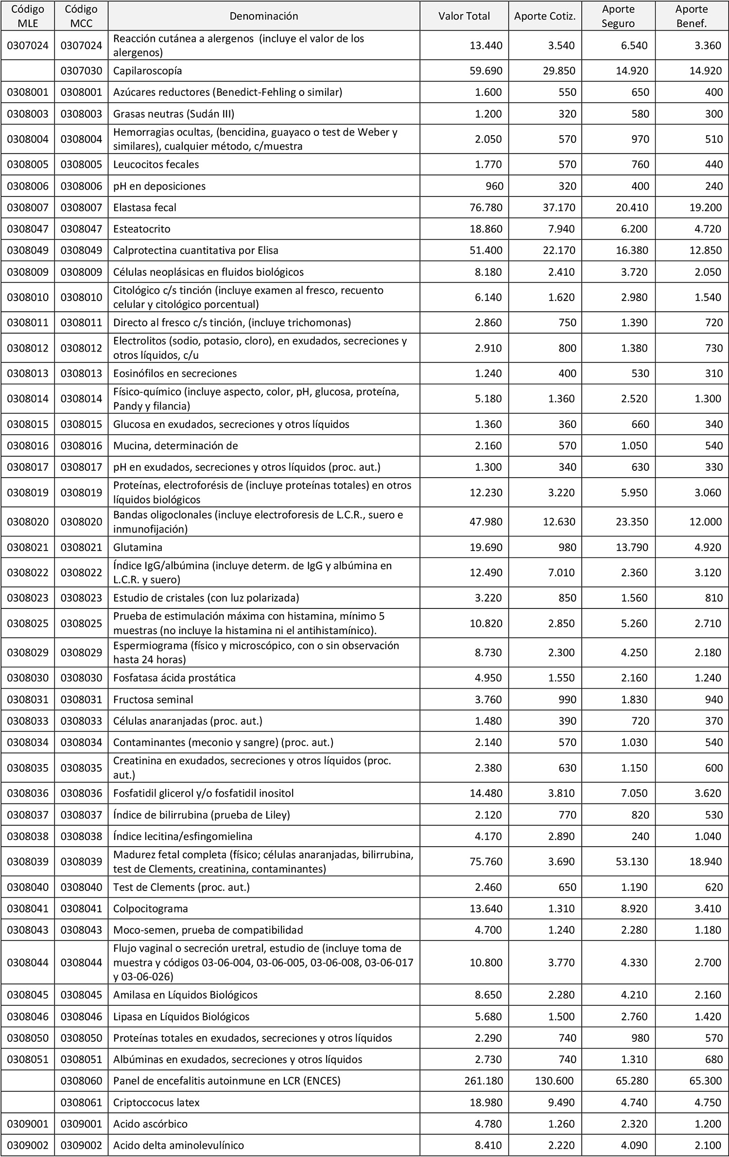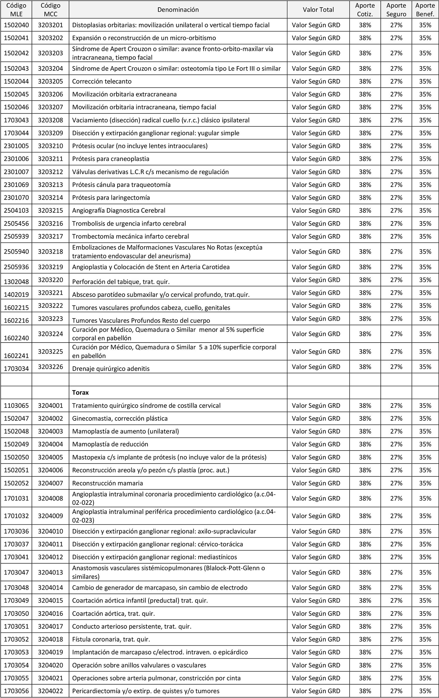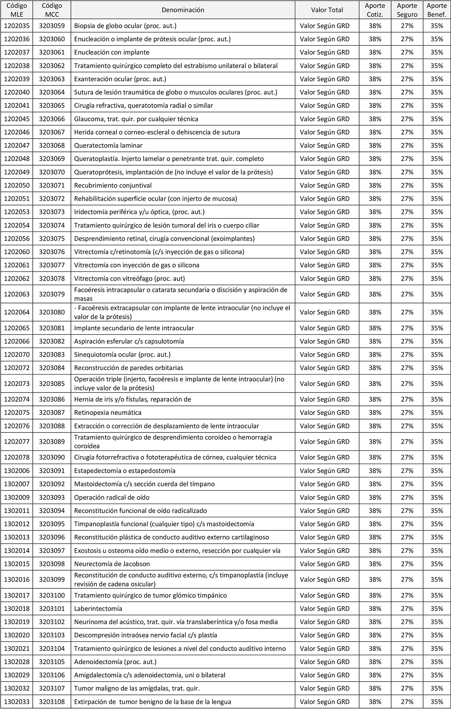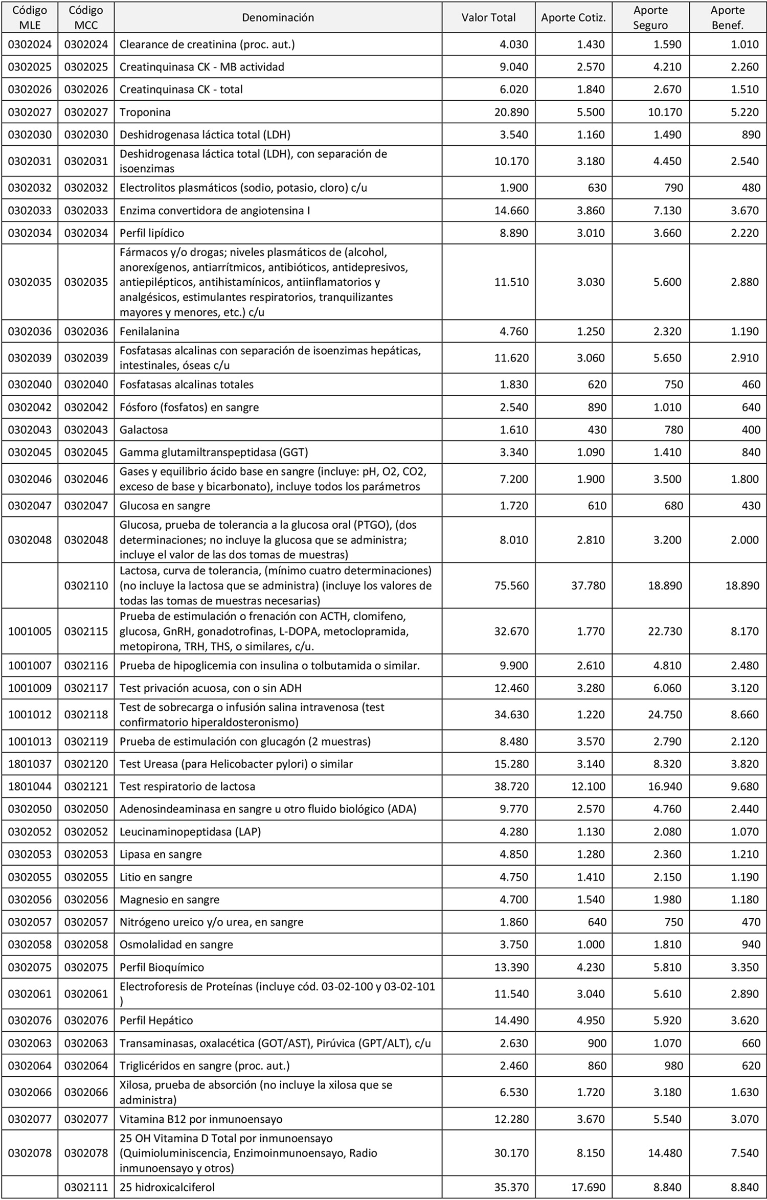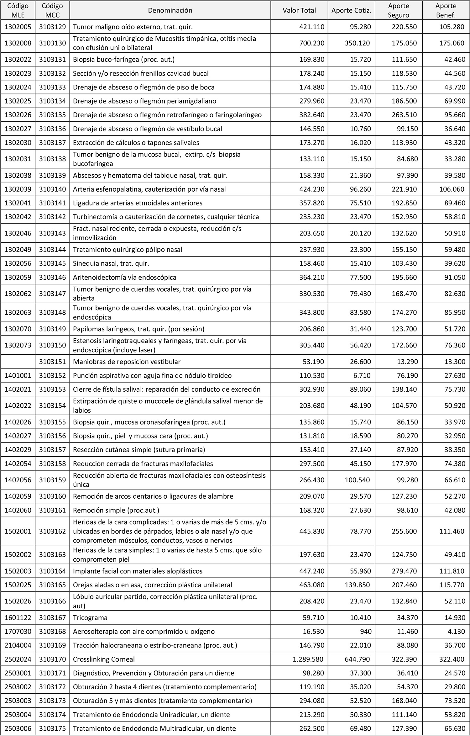 a) Prestaciones ambulatorias del Arancel MLE, que han sido reorganizadas en los siguientes grupos 01, 02 (códigos 0201405, 0201406, 0201407 y 0202501), 03, 04, 05, 06, 07, 08, 09, 13, 23, 24, 26, 29 y 31.