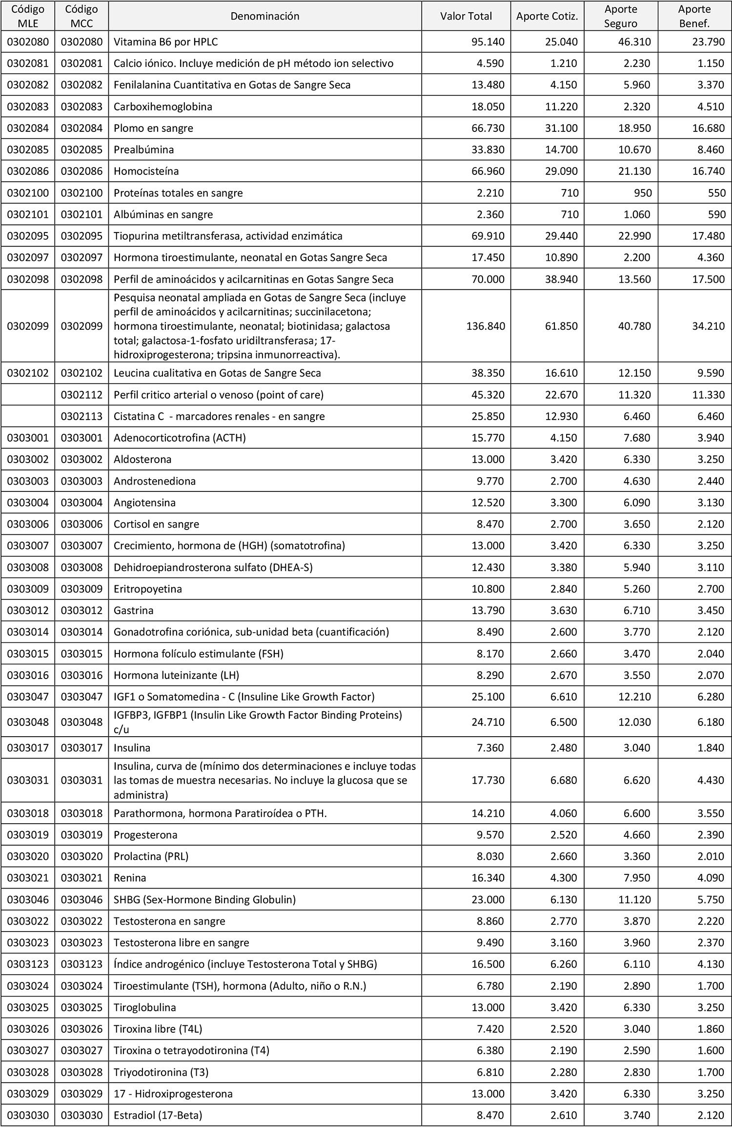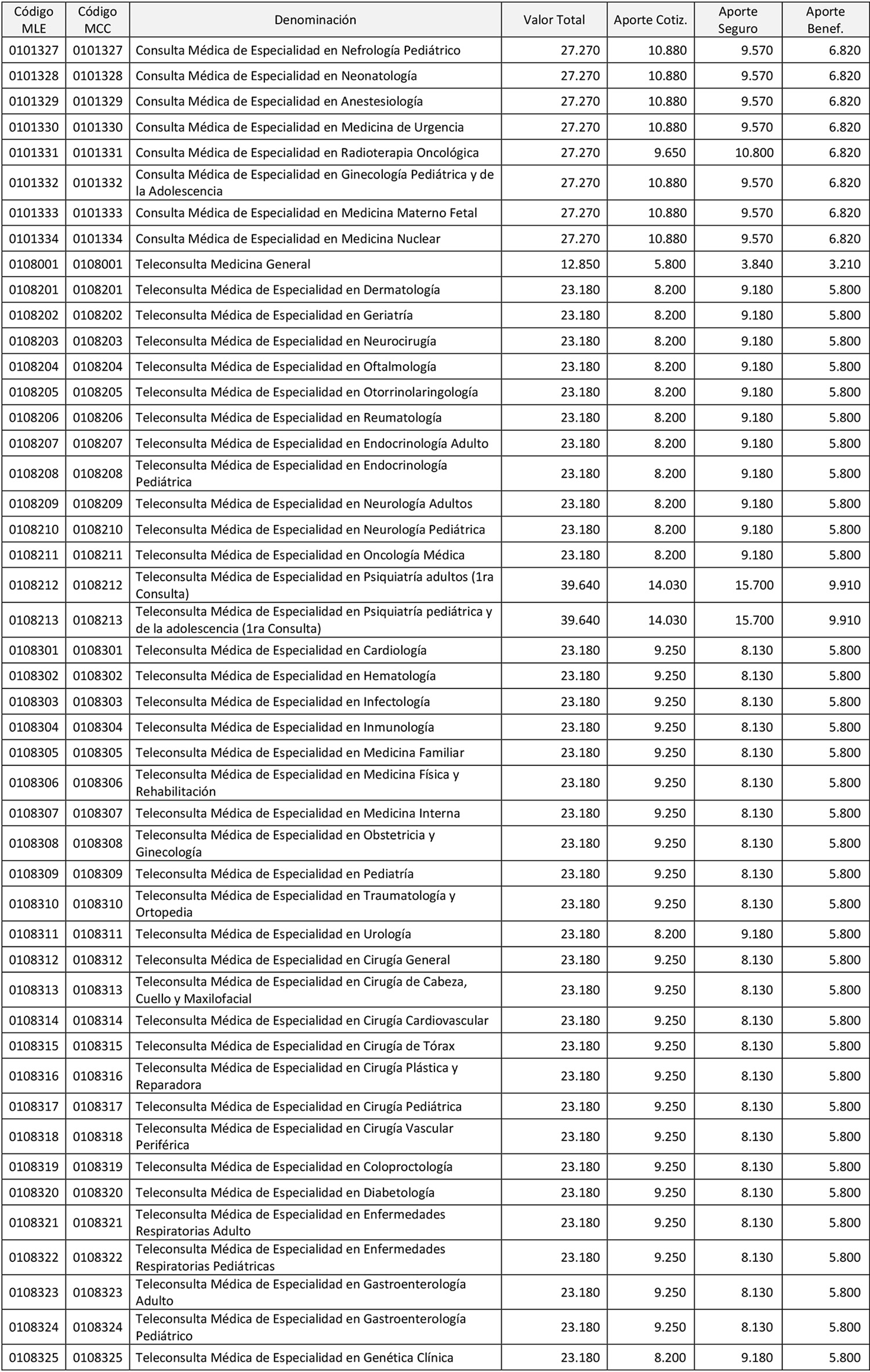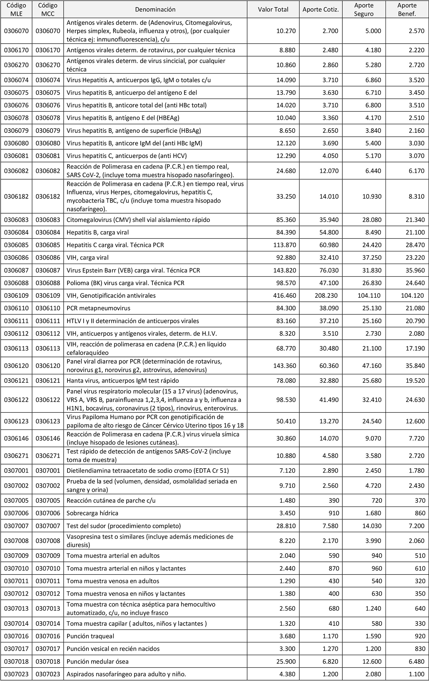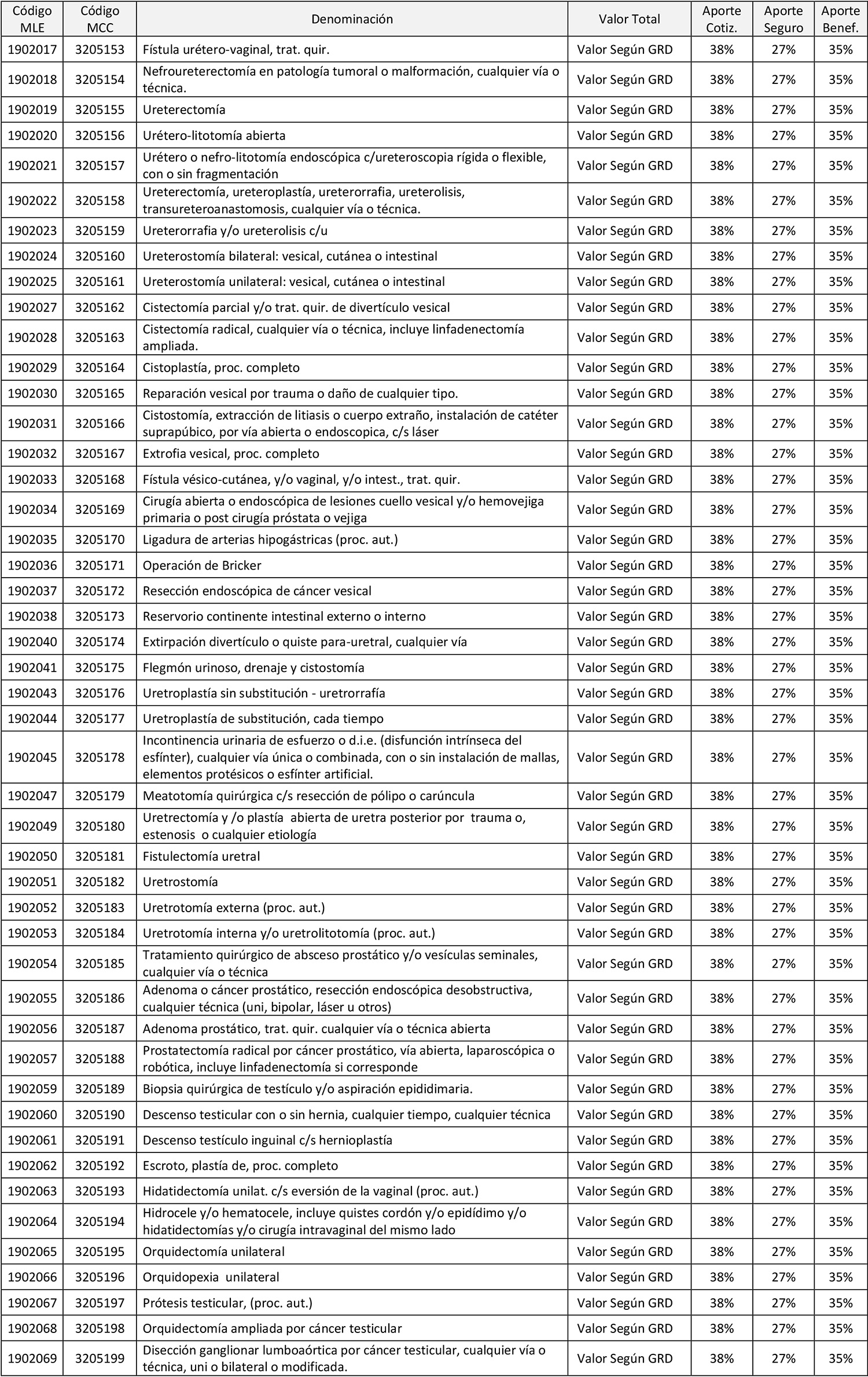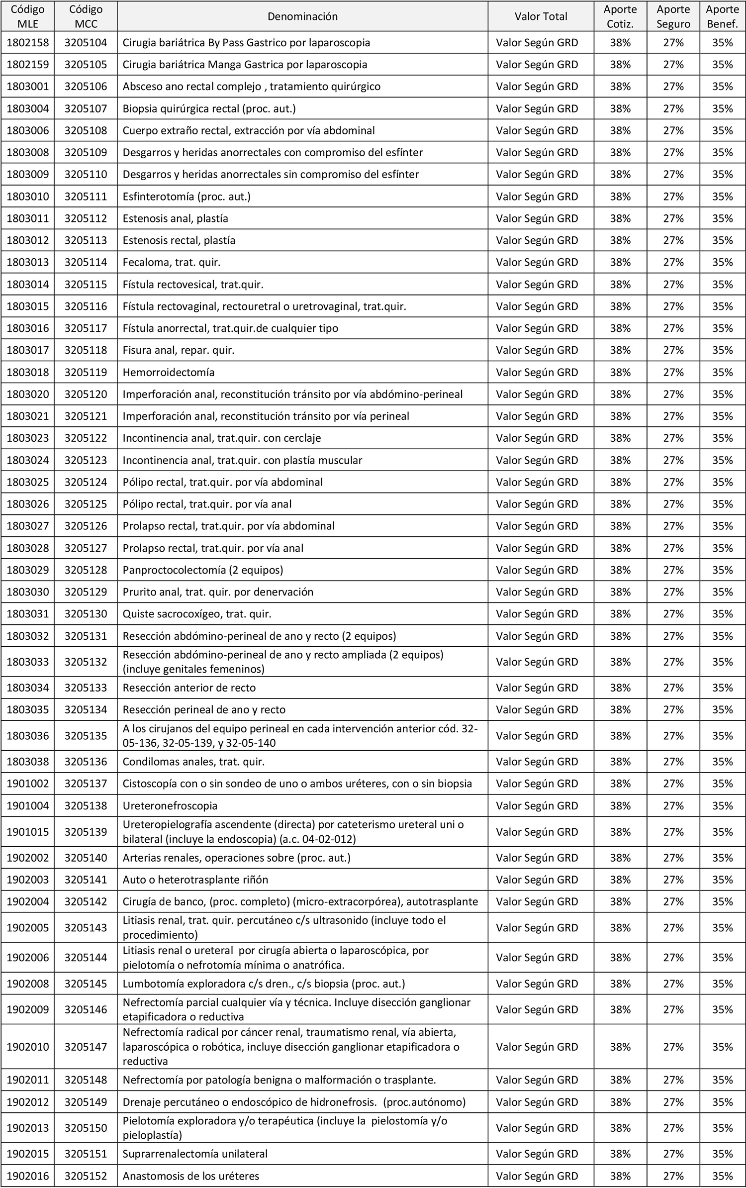 a) Prestaciones ambulatorias del Arancel MLE, que han sido reorganizadas en los siguientes grupos 01, 02 (códigos 0201405, 0201406, 0201407 y 0202501), 03, 04, 05, 06, 07, 08, 09, 13, 23, 24, 26, 29 y 31.