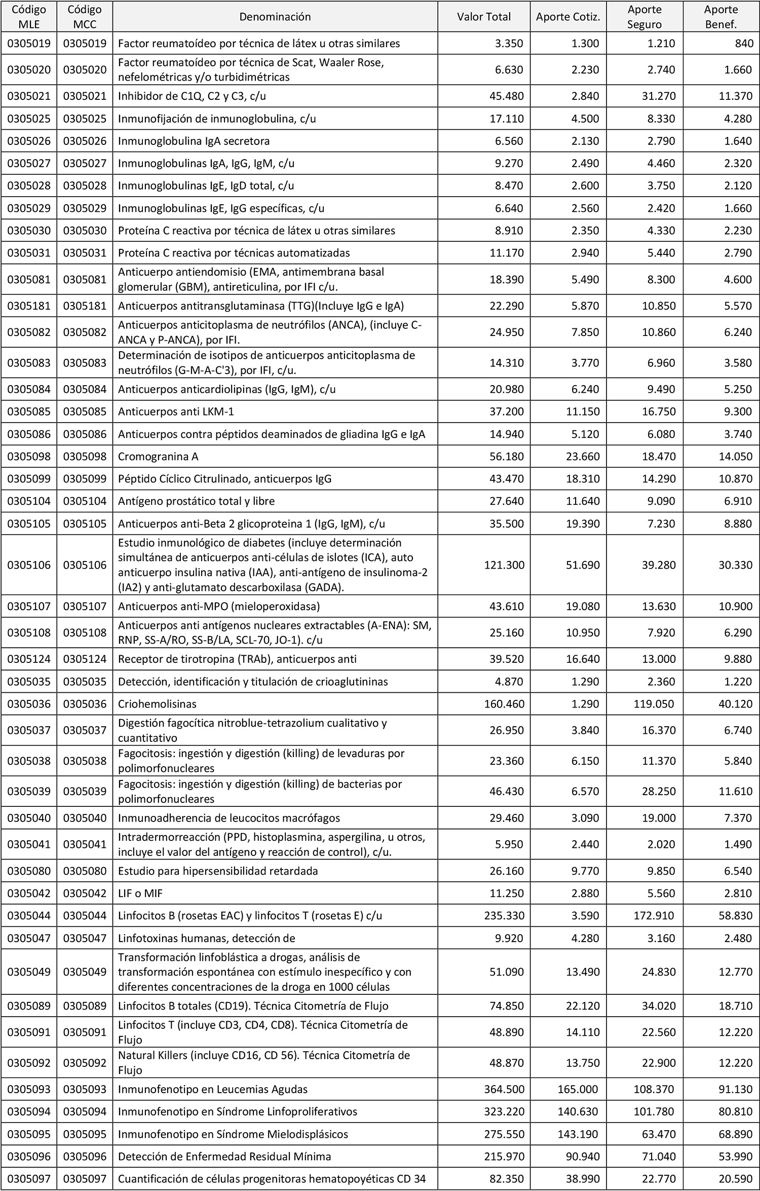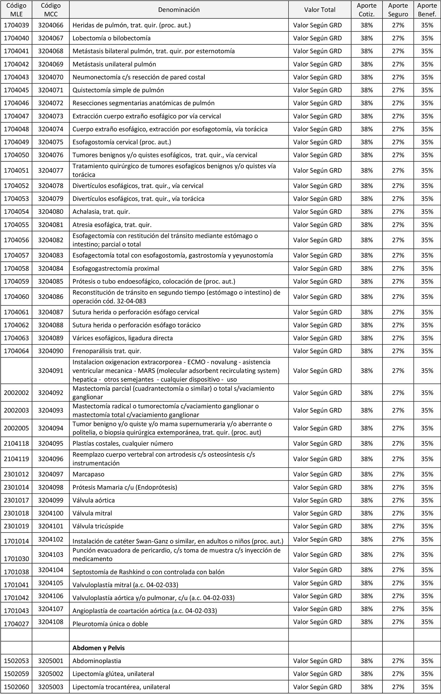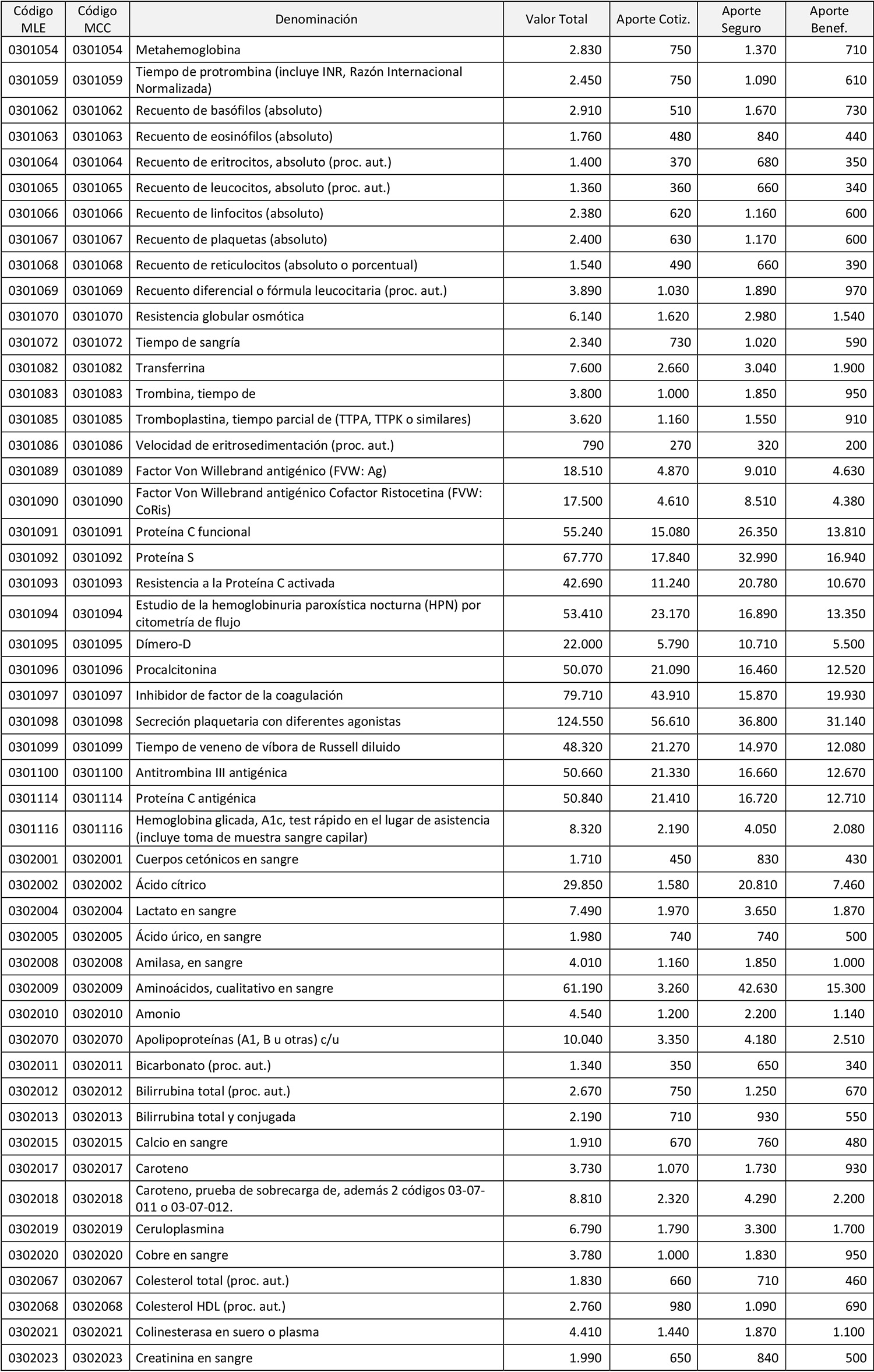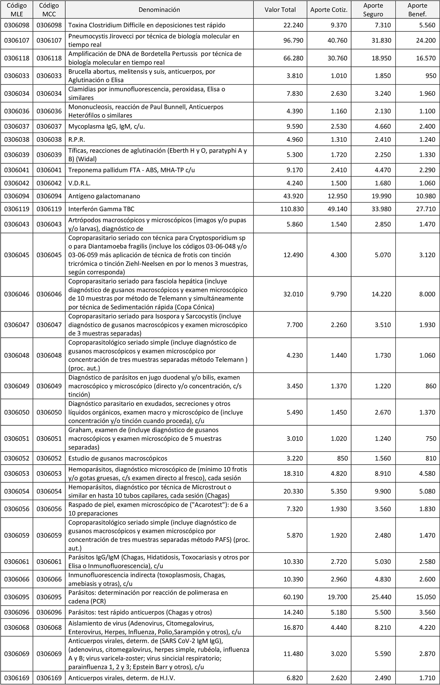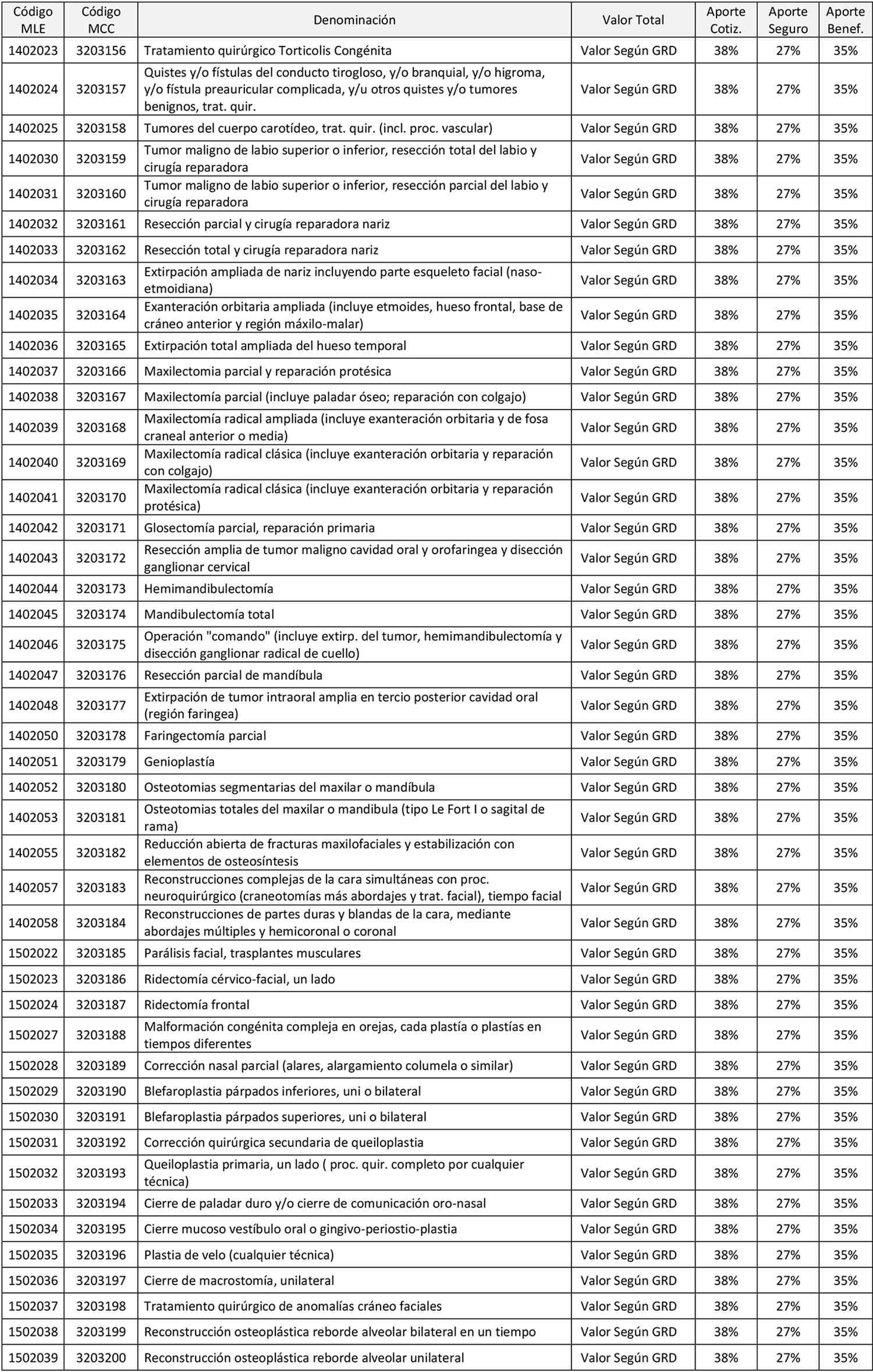 a) Prestaciones ambulatorias del Arancel MLE, que han sido reorganizadas en los siguientes grupos 01, 02 (códigos 0201405, 0201406, 0201407 y 0202501), 03, 04, 05, 06, 07, 08, 09, 13, 23, 24, 26, 29 y 31.