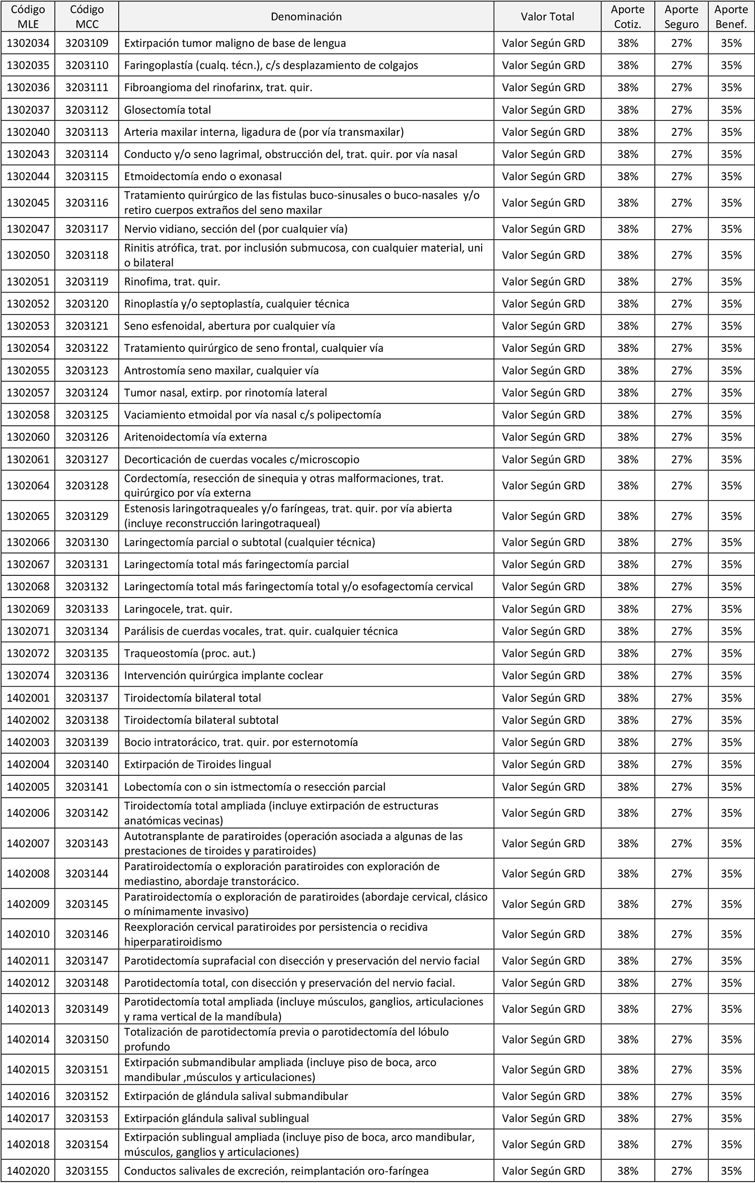 Los procedimientos diagnósticos e intervenciones quirúrgicas de otorrinolaringología del grupo N° 13, pasan a integrar los grupos N° 31 y N° 32 respectivamente.