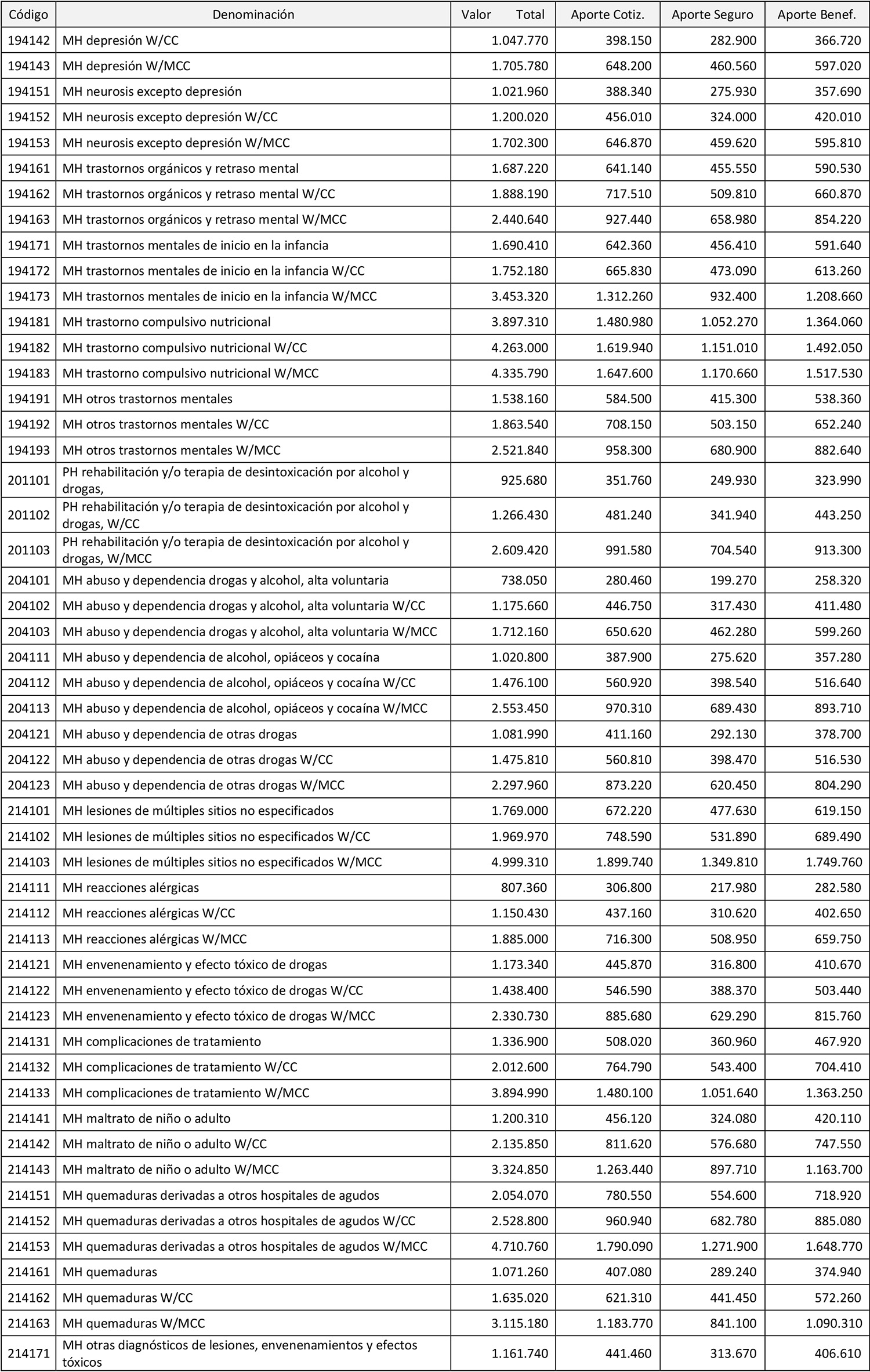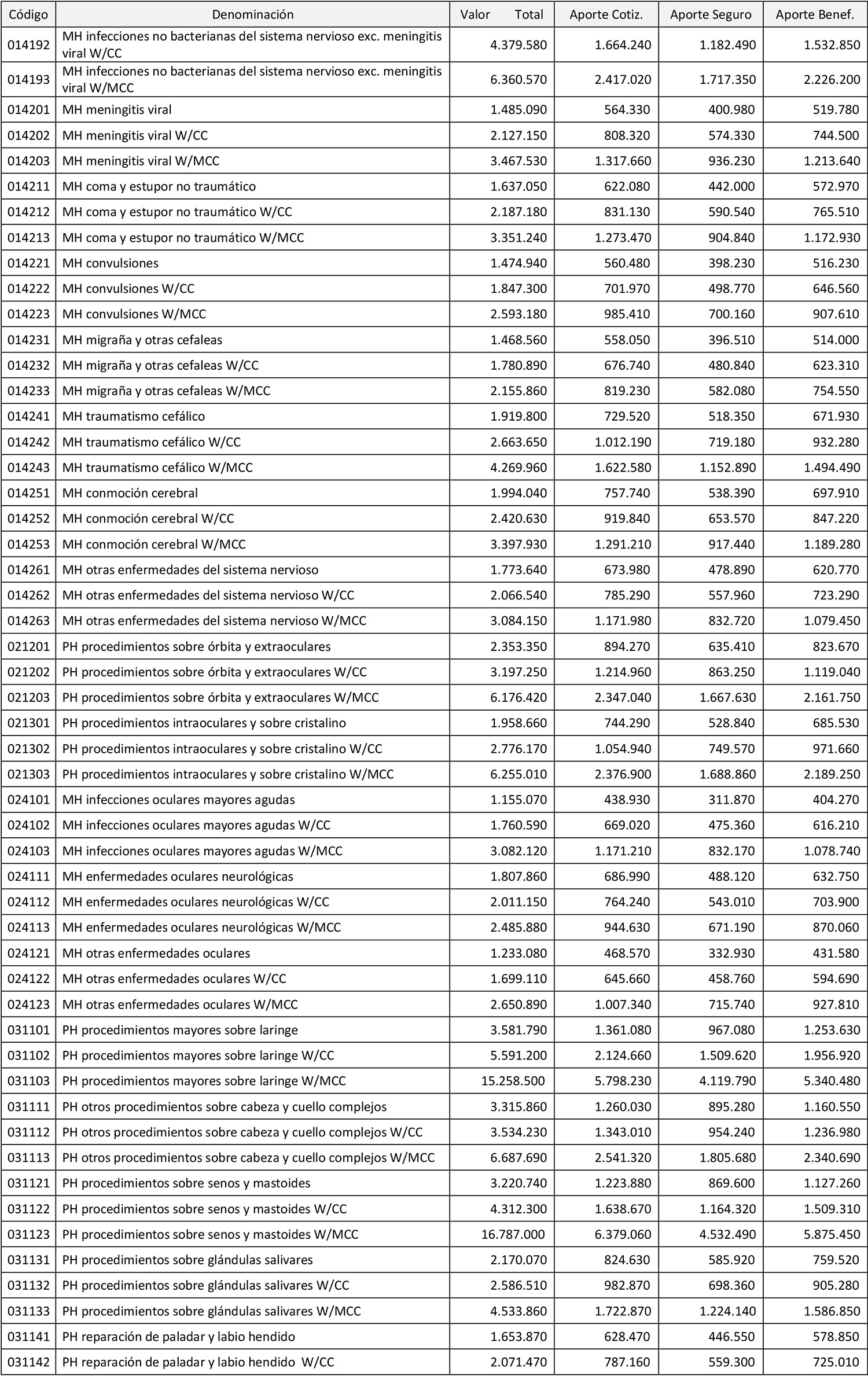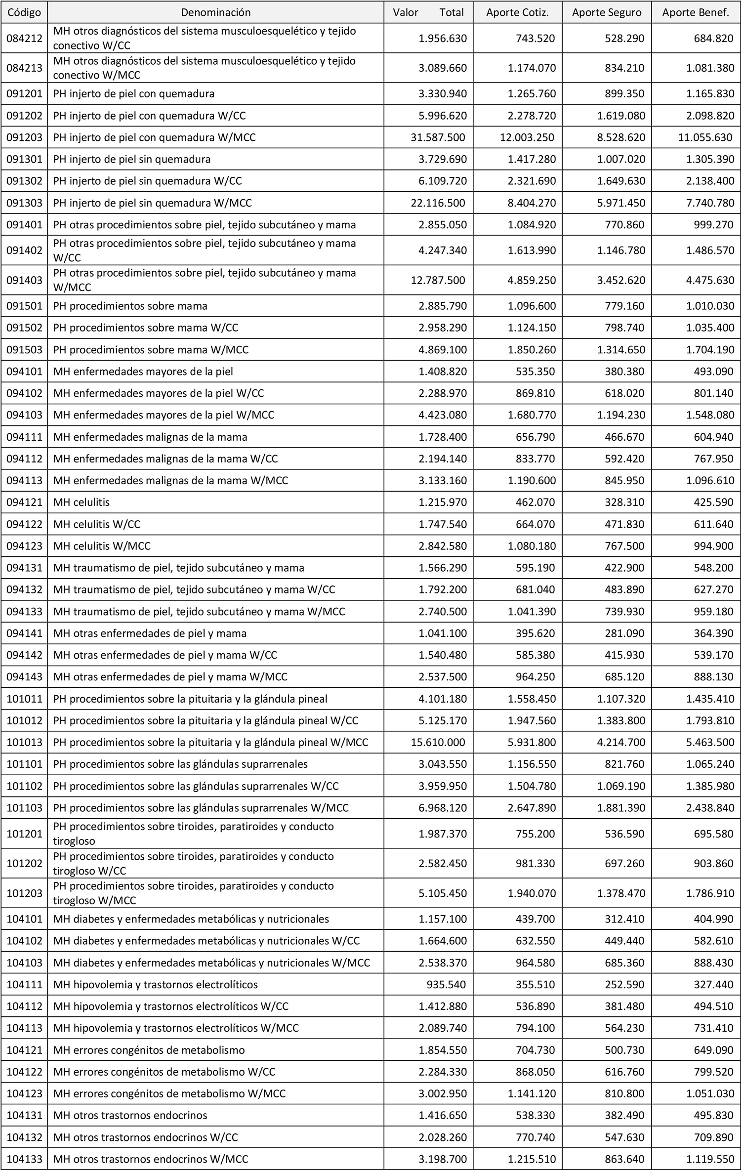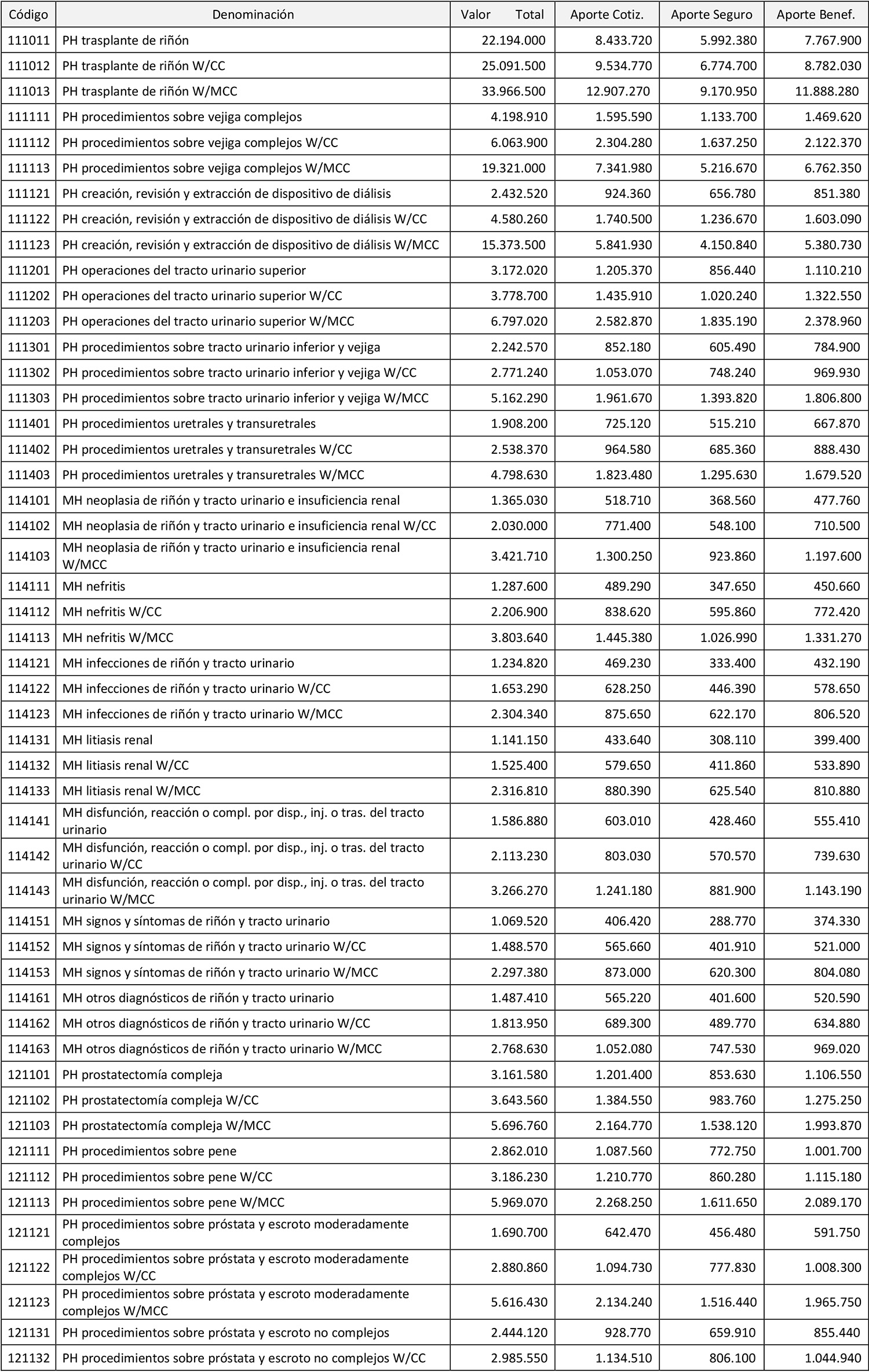 Artículo 5. Los precios base GRD establecidos en el Arancel MCC son los siguientes: