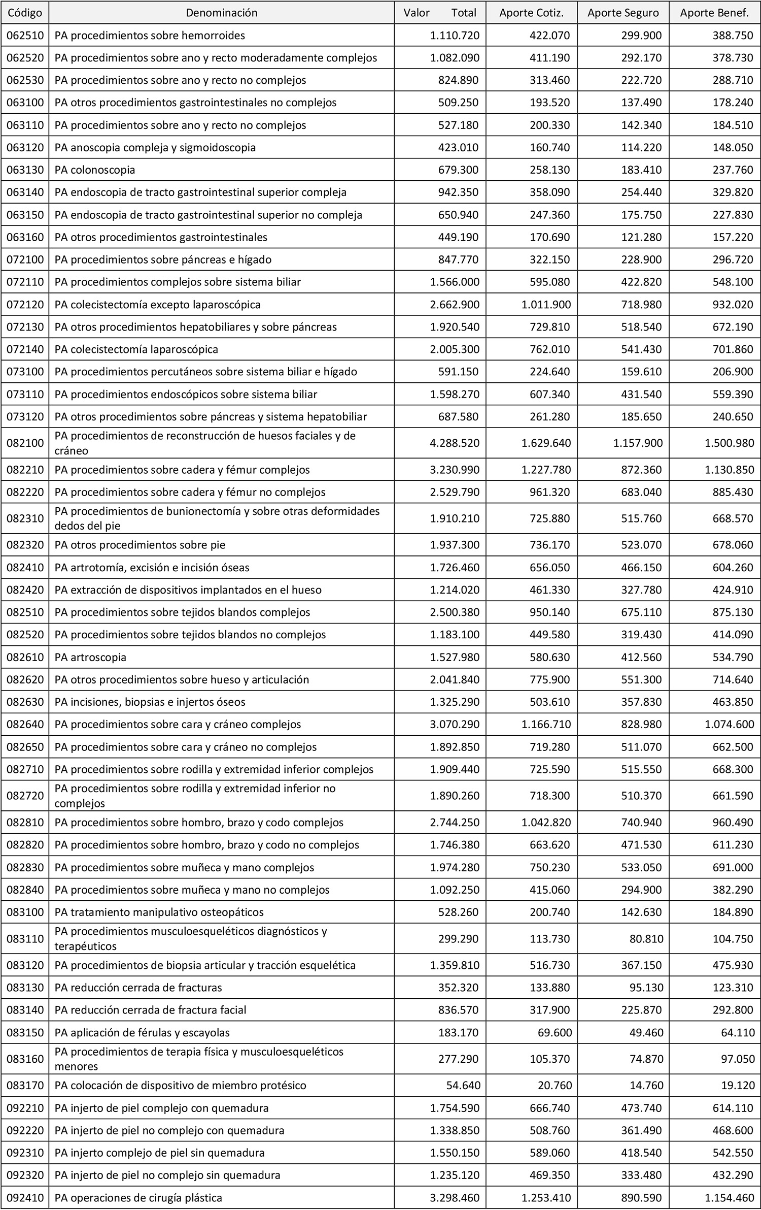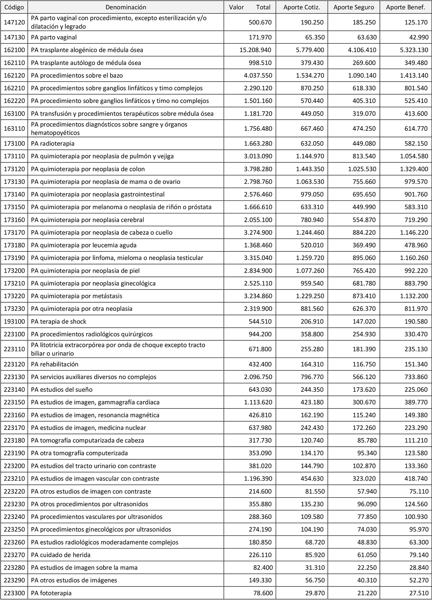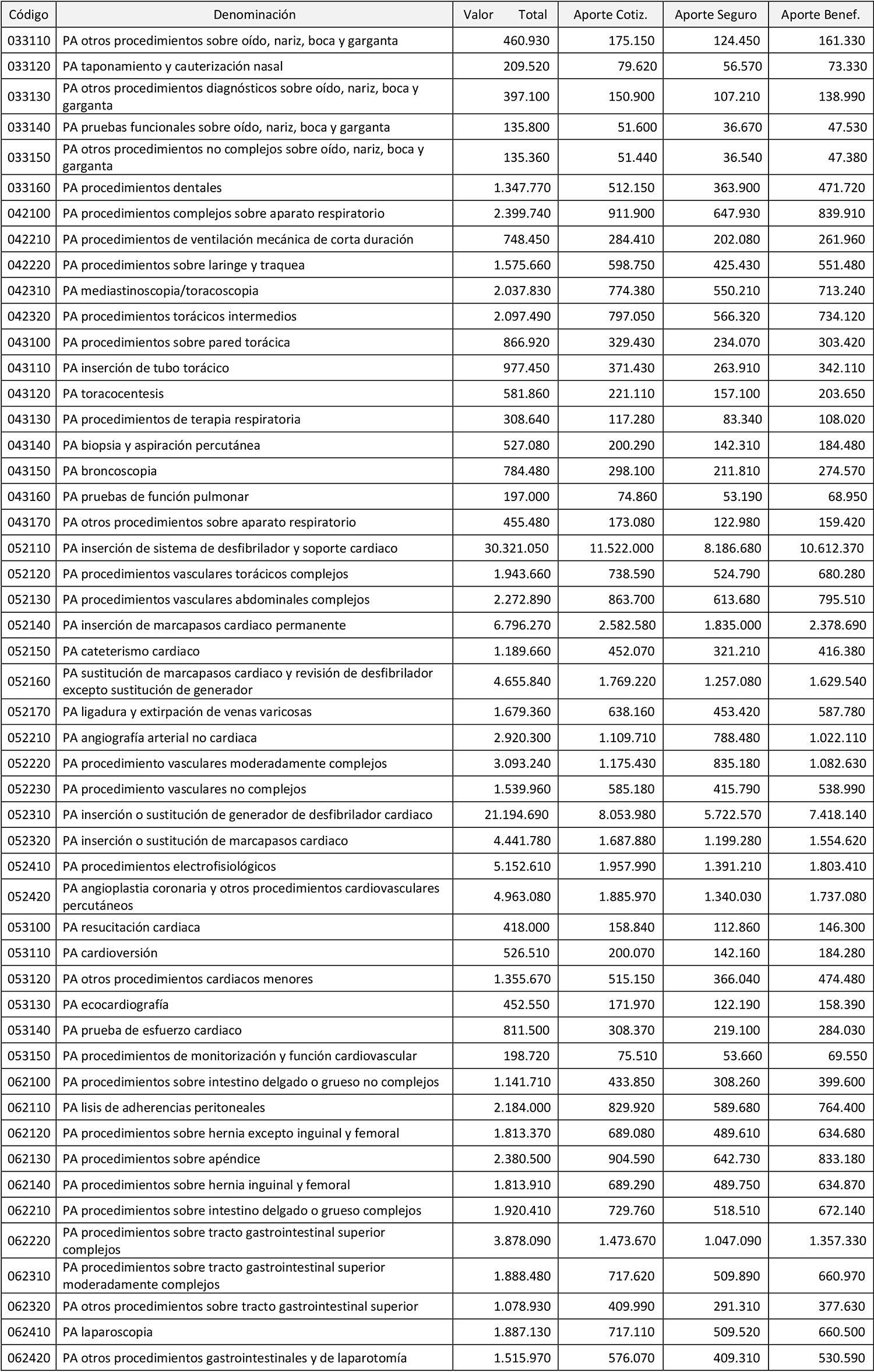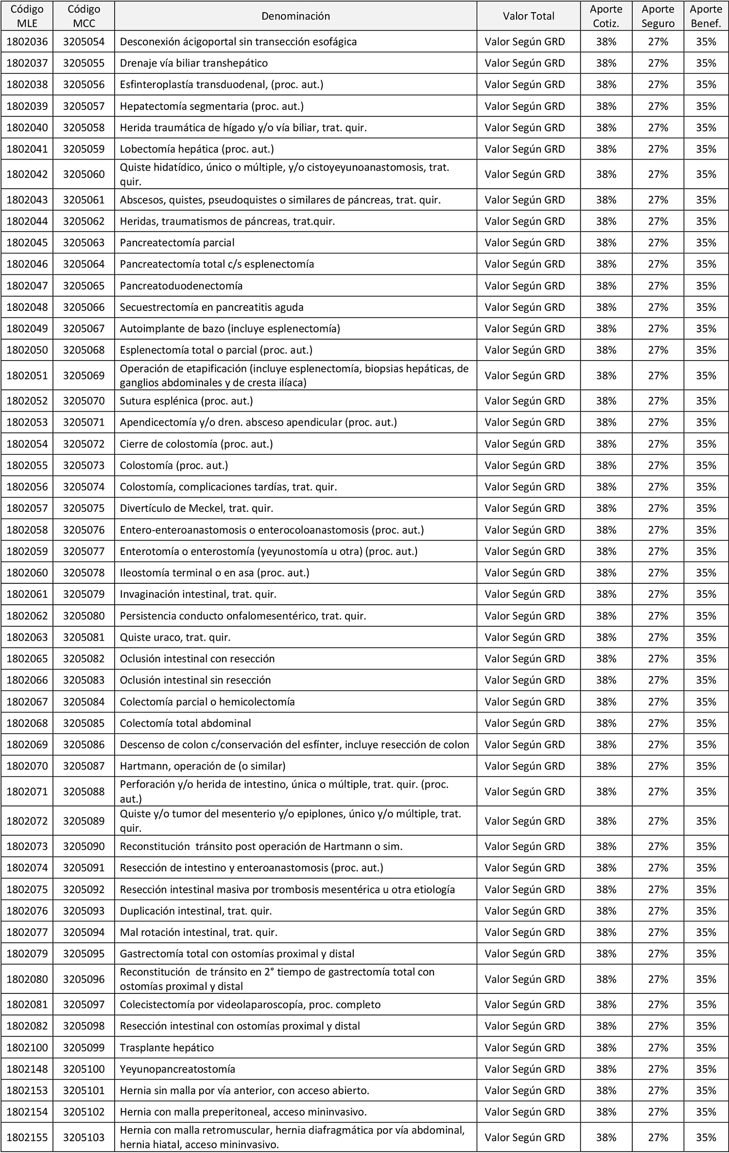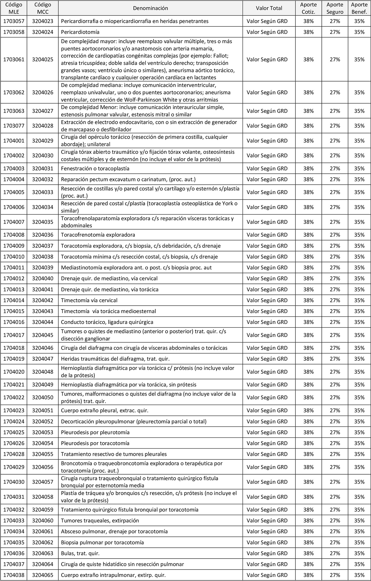 Artículo 5. Los precios base GRD establecidos en el Arancel MCC son los siguientes: