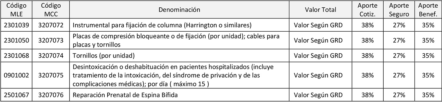Para los casos que sean resueltos utilizando prótesis descritas como Ajustes de Tecnología, se pagará cada prótesis utilizada en la intervención como adicional al valor del GRD.