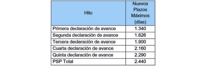Cuadro N° 1: Plazos máximos para Declaraciones de Avance y Puesta en Servicio Provisoria Total