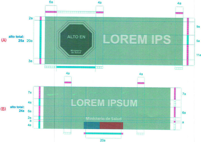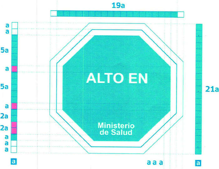 6) La base para la construcción proporcional de todos los elementos que componen el Mensaje y su disposición gráfica estará constituida según la unidad de medida "a", utilizada en cada uno de los diagramas contenidos en este decreto. La construcción del símbolo "ALTO EN", el complemento de gobierno y la tipografía deberán respetar la proporcionalidad construida a partir de la medida "a" tal como se indica en el diagrama 1.