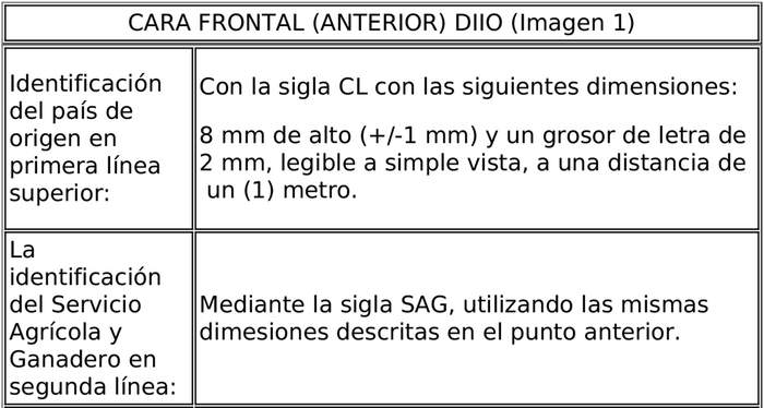 i. Para el caso de trazabilidad grupal o lote, se podrá usar el Dispositivo de Identificación Grupal Oficial sin RFID (tipo cinta visual). Las características del dispositivo grupal, debe tener mismas medidas del DIIO tipo cinta descritas en numeral iv. precedente. Debe contener el registro impreso de identificación del país con la sigla CL, además de la identificación del Servicio Agrícola y Ganadero mediante la sigla SAG, y la impresión de un registro que será definido por el Servicio, el cual estará especificado en la resolución de la especie.