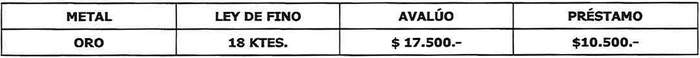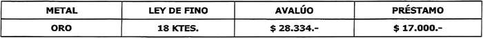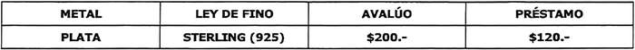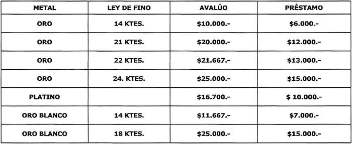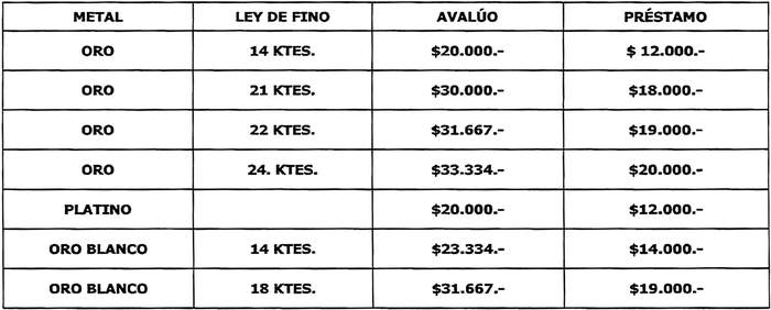 1. Fíjese Nuevo Avalúo por el gramo de metales nobles, utilizado por las Unidades de Crédito en el cálculo de los préstamos con garantía prendaria del rubro alhajas conforme a la siguiente tabla y las siguientes condiciones: