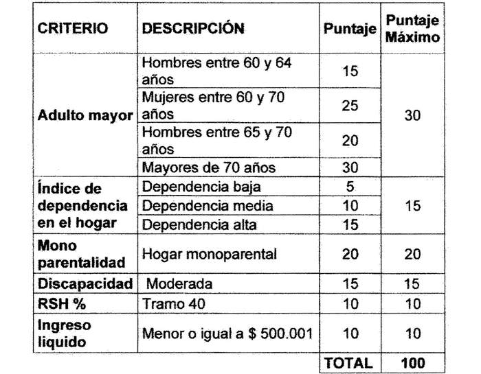 Artículo 3º.- La evaluación de los deudores hipotecarios se hará conforme a los criterios de vulnerabilidad que a continuación se indican, de acuerdo a lo cual se les asignará el puntaje correspondiente:
