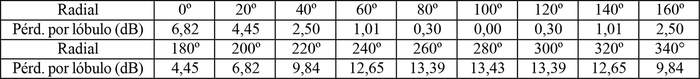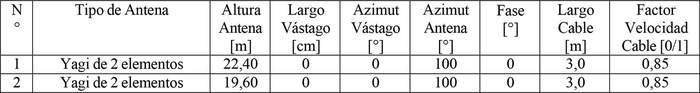 - Arreglo de antenas de acuerdo a la siguiente tabla: