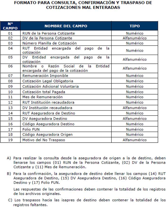 Finalizado el proceso de revisión entre Isapres, las cotizaciones mal enteradas de las personas que no fueron confirmadas como beneficiarias de alguna de ellas y que correspondan a la cotización legal para Salud, deberán ser traspasadas por la Isapre de origen, en forma íntegra al Fonasa, según el archivo y la comunicación de manera escrita o electrónica establecida en el Anexo N° 1.