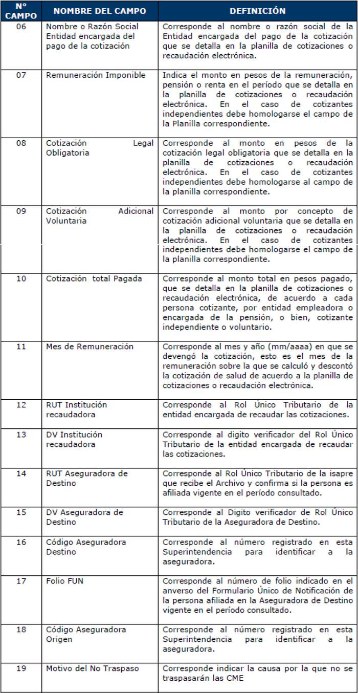 b) Se revisa que los archivos enviados por las Isapres posean el formato señalado en el Anexo N°1 que corresponde al archivo de 19 columnas establecido por normativa vigente de la Superintendencia de Salud.
