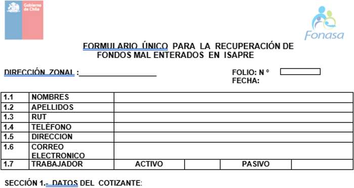 Formulario Único para la Recuperación de Fondos Mal Enterados en Isapre