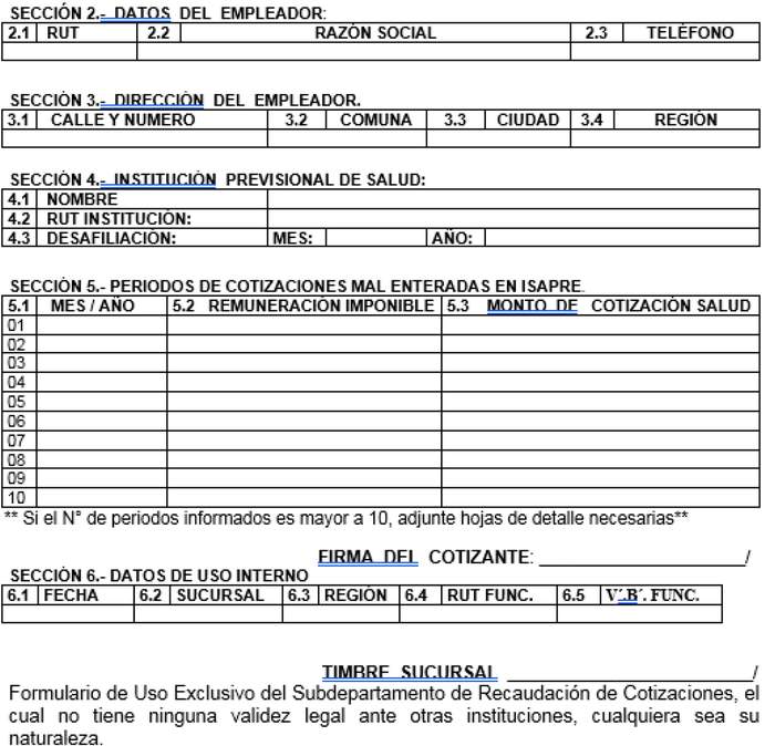 a) El Cotizante y/o Empleador, concurre a una sucursal de Fonasa, para notificar la existencia de pagos erróneos de cotizaciones de salud realizados a una Isapre, para lo cual completa el Formulario establecido en Anexo N°2, adjuntando la respectiva documentación fundante solicitada en este acto administrativo, detalladas anteriormente. Este formulario es remitido por la Sucursal al Subdepartamento Recaudación de Cotizaciones a través del Gestor Documental Cero Papel, en un plazo de 2 días hábiles desde que se recepciona la Solicitud. El formulario con la documentación fundante obligatoria es enviada por las Sucursales de Fonasa a nivel país a dicho Subdepartamento, donde además del Formulario Único para la Recuperación de Fondos Mal Enterados en Isapres, el ejecutivo de Sucursal debe adjuntar la totalidad de la documentación fundante solicitada de manera completa y legible.