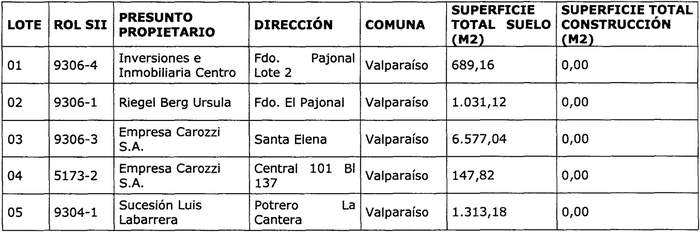 b) Que el Director (S) del Serviu de la Región de Valparaíso, por el Ord. N° 6097, de 11 de septiembre de 2024, solicitó la dictación del decreto que apruebe la expropiación de 5 lotes en la comuna de Valparaíso, necesarios para la ejecución del proyecto "Mejoramiento y Prolongación Av. Alemania, Etapa 3, Tramo Cl entre Carlos Rogers y Santa Elena", que cuenta con recomendación favorable del Ministerio de Desarrollo Social y Familia, código BIP 40014727-0.