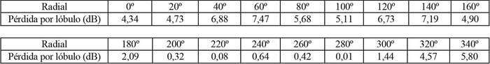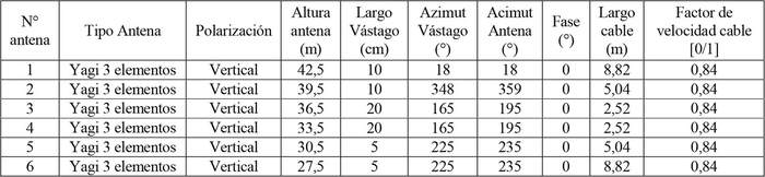 - Arreglo de antena, de acuerdo al siguiente cuadro: