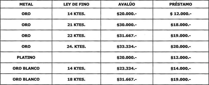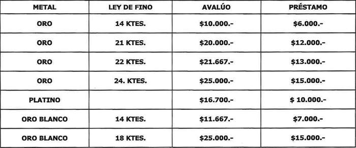 1. Fíjese nuevo avalúo por el gramo de metales nobles, utilizado por las Unidades de Crédito, en el cálculo de los préstamos con garantía prendaria del rubro alhajas, conforme a la siguiente tabla y condiciones: