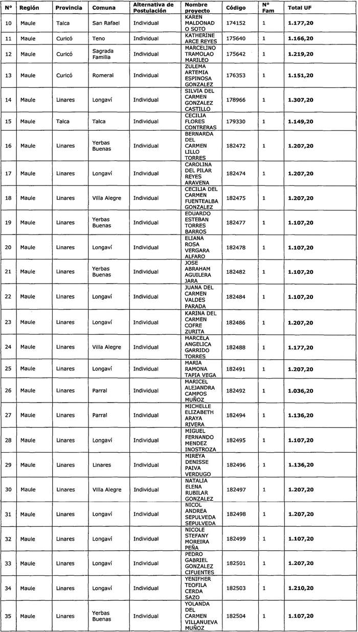 1. Modifícase la resolución exenta Nº 324 (V. y U.), de 2024, en el sentido de reemplazar la tabla inserta en su Resuelvo 2. por la siguiente: