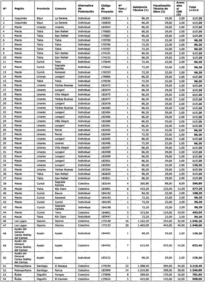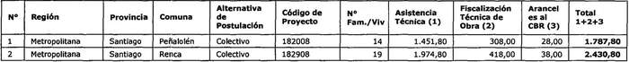 3. El monto del subsidio asignado de conformidad con el cuadro del Resuelvo 2 de esta resolución comprende los siguientes montos por concepto de Servicios de Asistencia Técnica, de Labores de Fiscalización Técnica de Obra y pago de Aranceles al Conservador de Bienes Raíces: