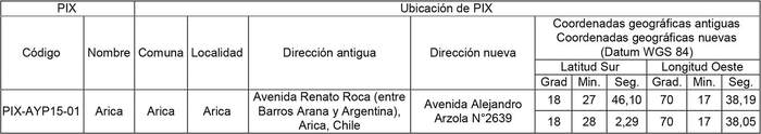 1. Autorízase a la concesionaria para modificar la dirección y coordenadas geográficas del PIX autorizado mediante decreto supremo del literal n de los Vistos, según se indica a continuación: