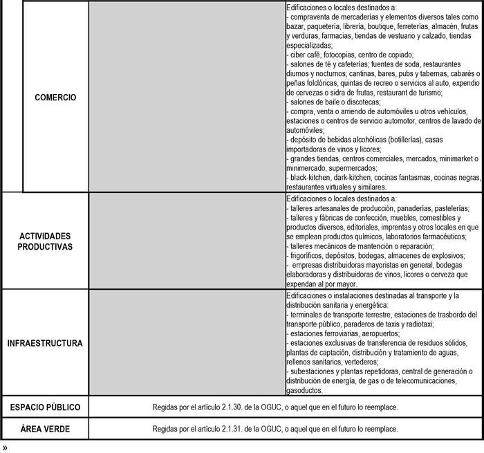 Las actividades específicas permitidas o prohibidas en la zona de uso de suelo patrimonial cultural mixta se consignan en el cuadro a continuación.