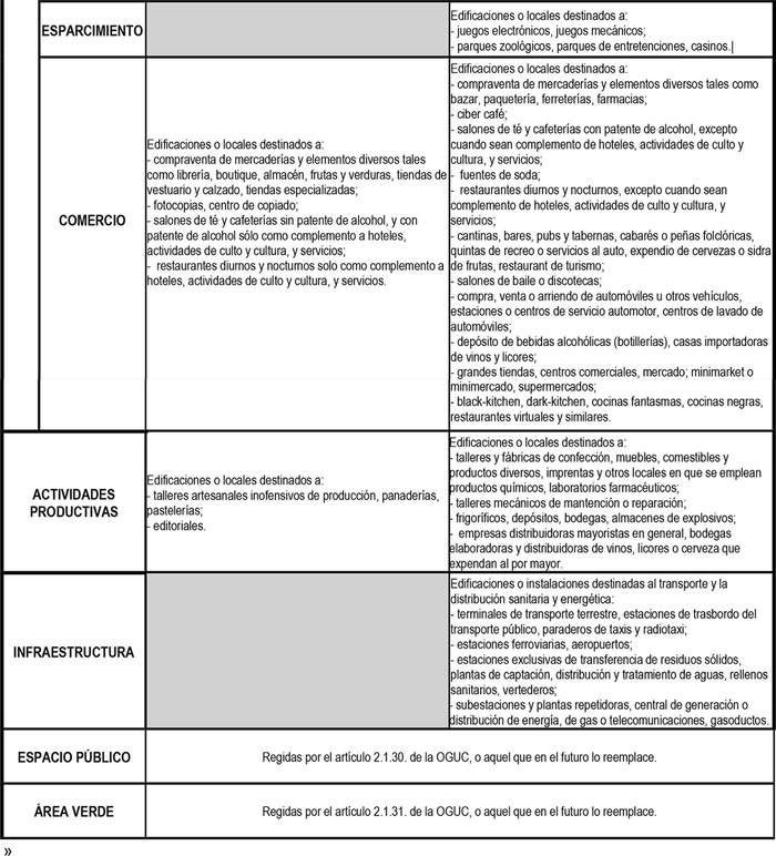 Los proyectos de edificación nueva o refacción de la edificación existente que se proyecten en las áreas de protección de recursos de valor patrimonial cultural se regirán por las normas de las zonas de uso de suelo patrimonial (ZUSP) descritas en el cuadro a continuación.