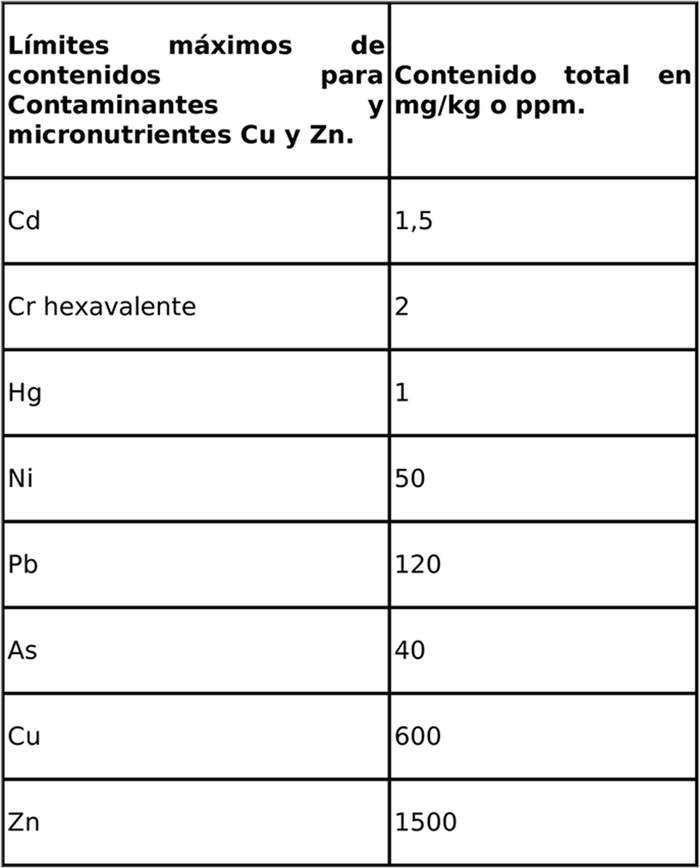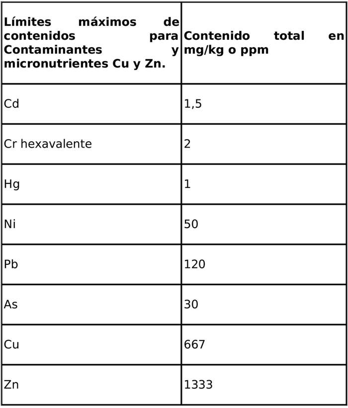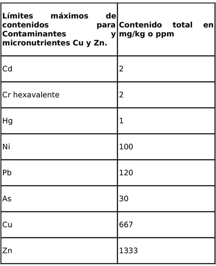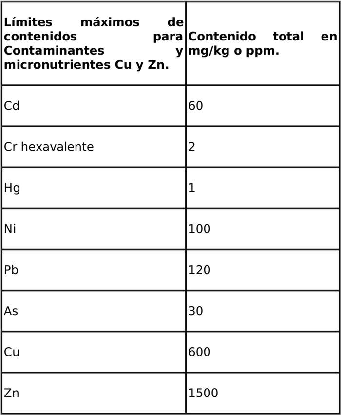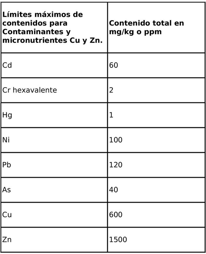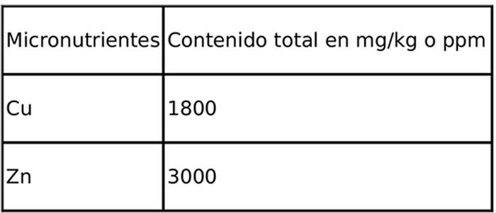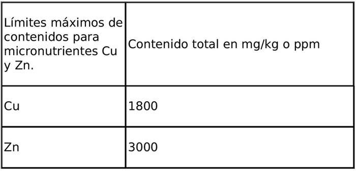 ii. Para el caso de los micronutrientes cobre y zinc, no se deben sobrepasar los límites que se presentan en el cuadro Nº2.