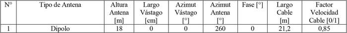 Arreglo de antena de acuerdo a la siguiente tabla: