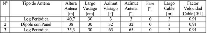 - Arreglo de antenas de acuerdo a la siguiente tabla:
