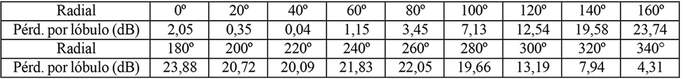 - Diagrama de radiación horizontal de acuerdo a la siguiente tabla: