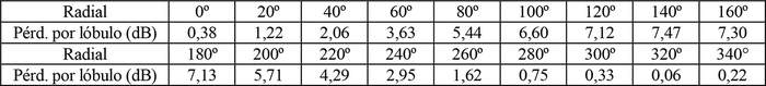 - Diagrama de radiación horizontal de acuerdo a la siguiente tabla: